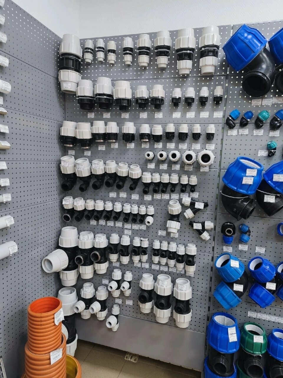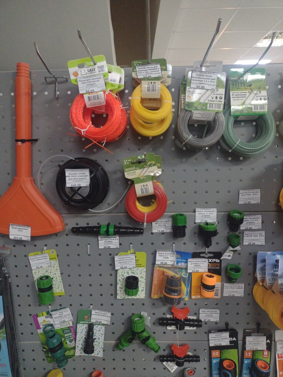 Много всего по водопровод, но надо проверять, что выдают на складе. Мне положили не ту резьбу. Итог — 600 рублей.