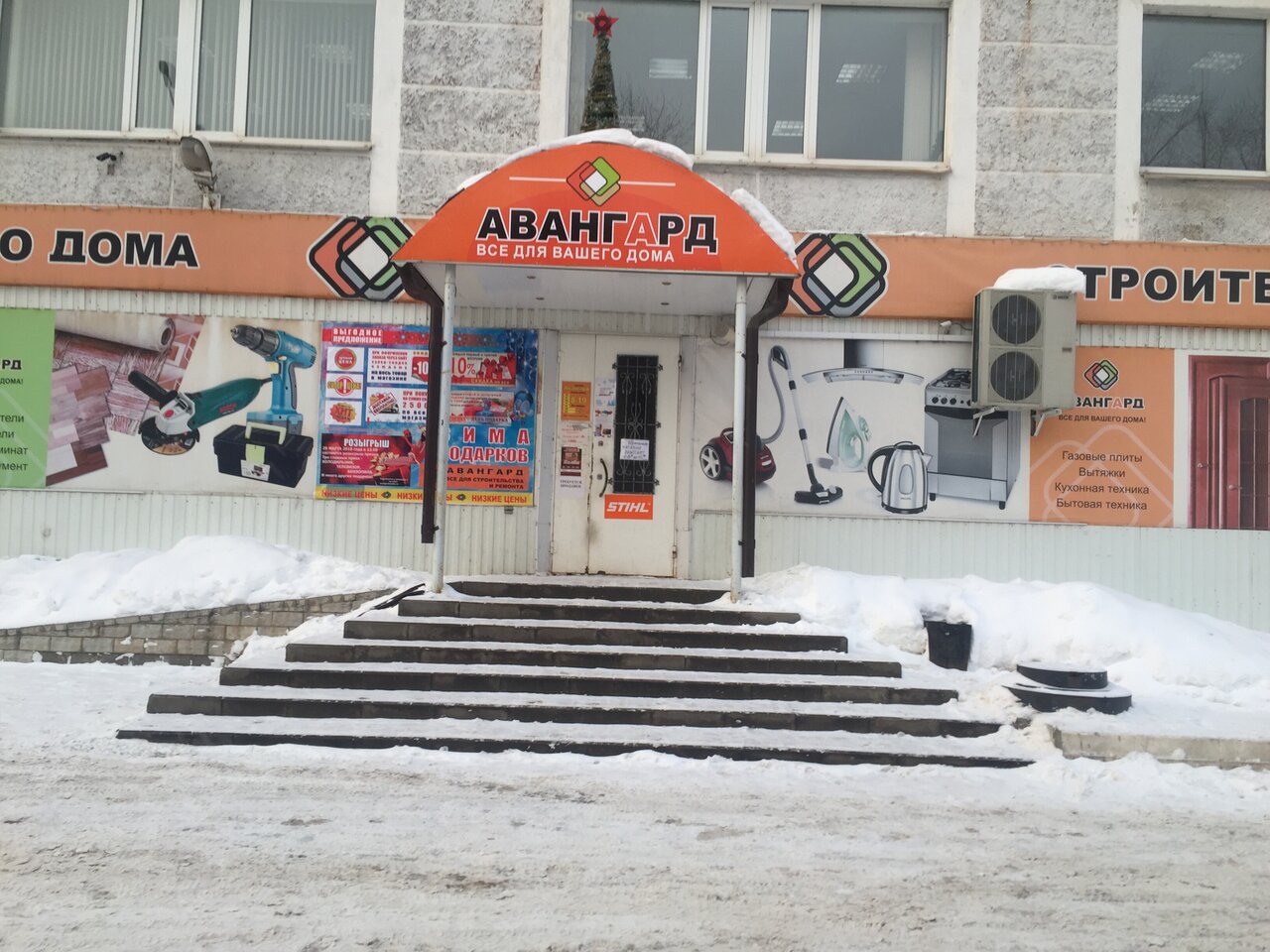 Магазин расположен по адресу: площадь Карла Маркса, 2, ТЦ «Авангард», 1 этаж. Предлагает широкий ассортимент строительных материалов, инструментов и товаров для ремонта. Режим работы: пн–сб 08:00–19:00, вс 08:00–18:00. Контактный телефон: +7 (49242) 2-26-07.