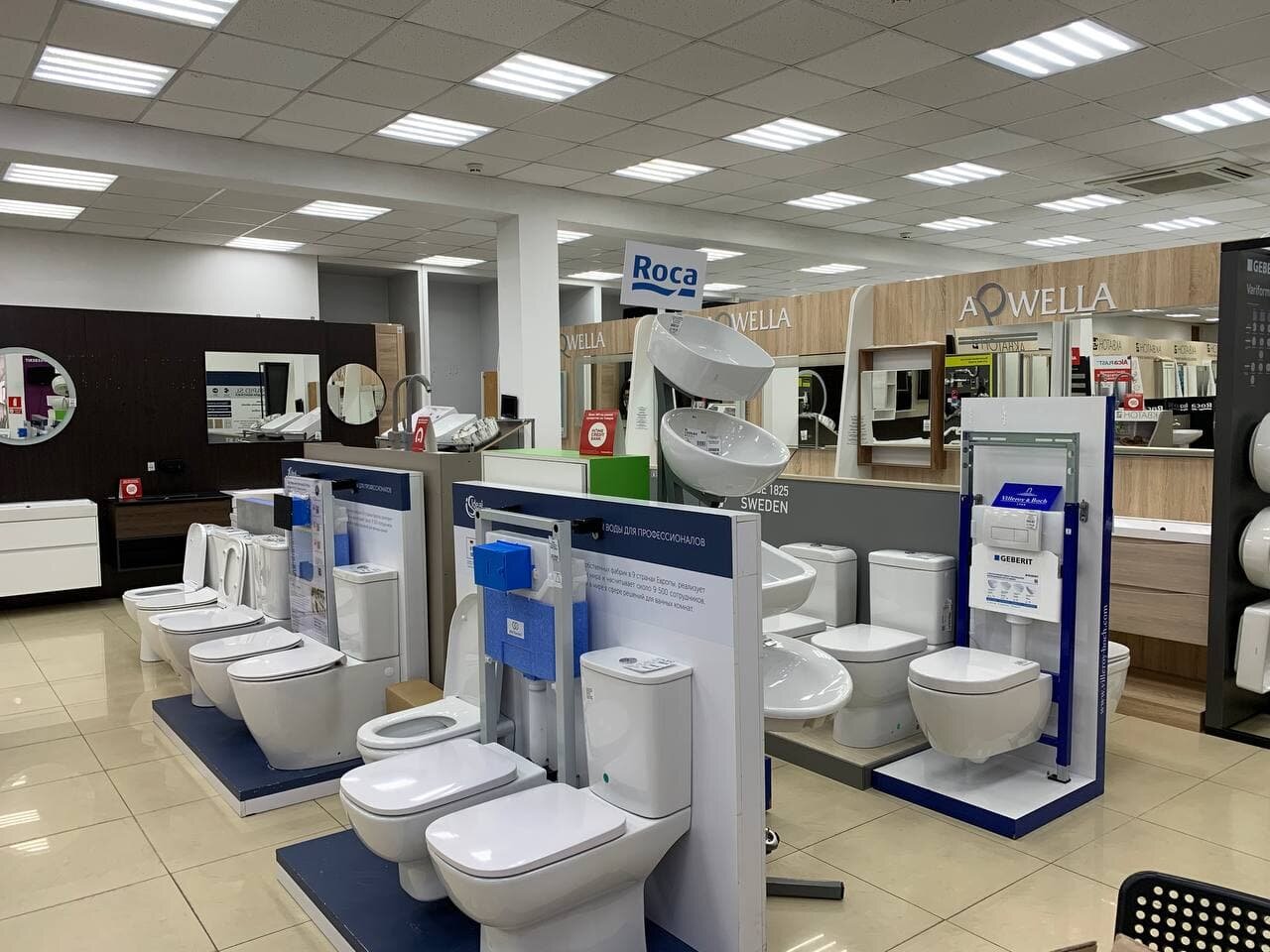 - Большой выбор товаров (плитка, сантехника, напольные покрытия)