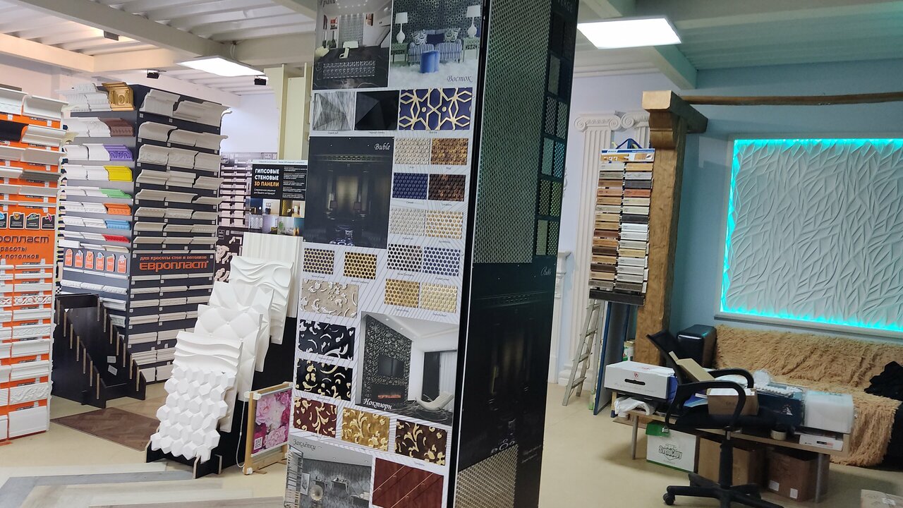 Магазин находится в удобно месте, можно поставить машину на охраняемой стоянке, бесплатно для клиентов, к тому же огромный выбор лепнины и отделочных материалов по отличным ценам. Менеджеры грамотно все объясняют и вовремя осуществляется доставка, в общем лайк, подписка и колокольчик ))