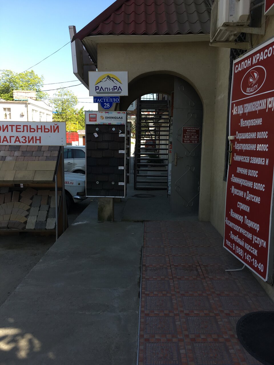 Строительный магазин «Рапира» в Сочи (ул. Гастелло, 28Б) предлагает широкий ассортимент материалов для строительства и ремонта, включая асбест и алюминиевые композитные панели. Режим работы: пн-пт 08:00–17:00, сб 09:00–15:00. Контакты: +7 (962) 887-77-40, +7 (962) 887-84-44, +7 (918) 007-29-91, +7 (928) 666-41-46. Подробнее на сайте: (http://ooo-rapira.pulscen.ru/).
