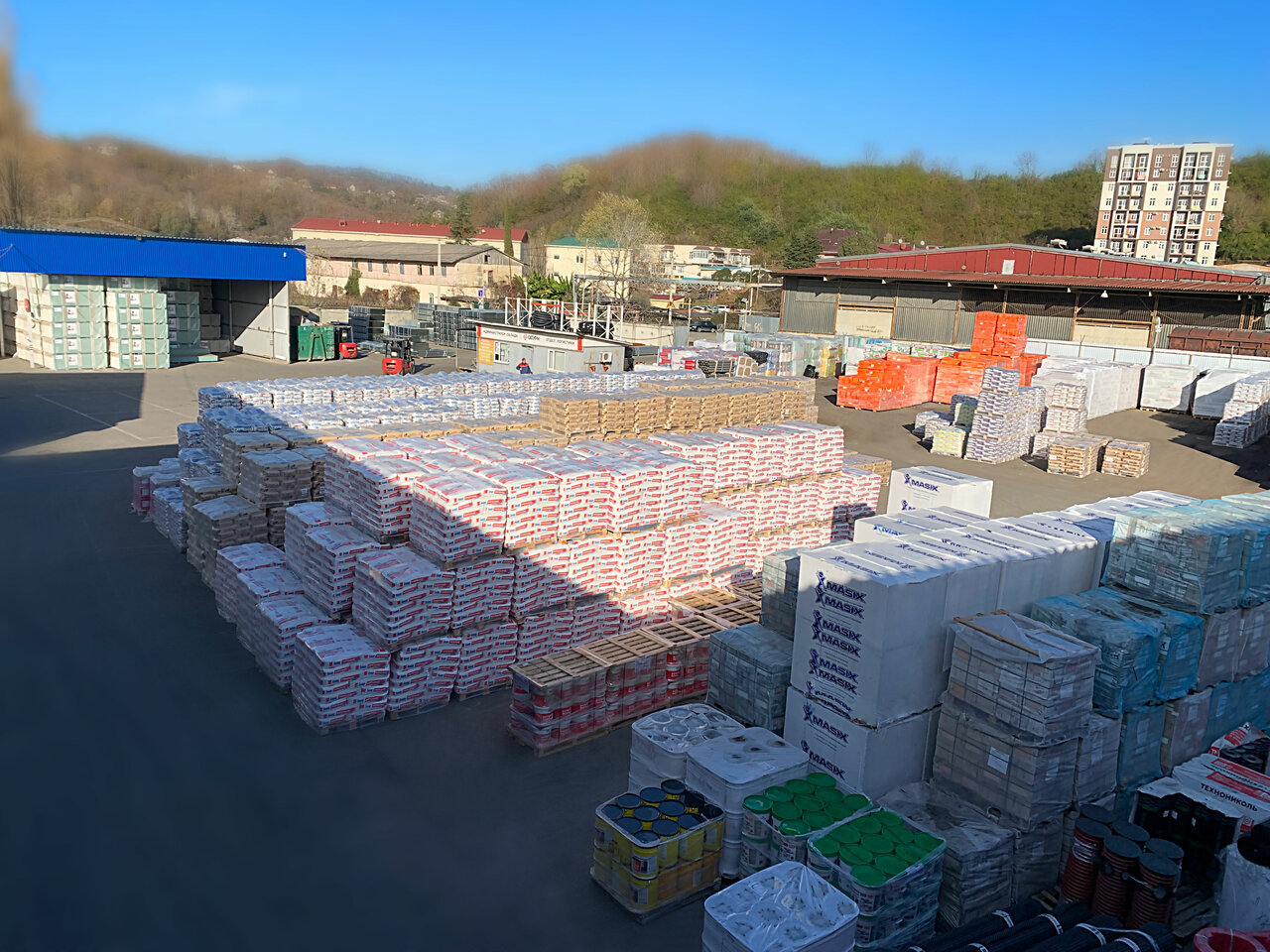 - Широкий ассортимент строительных материалов, сантехники и инструментов