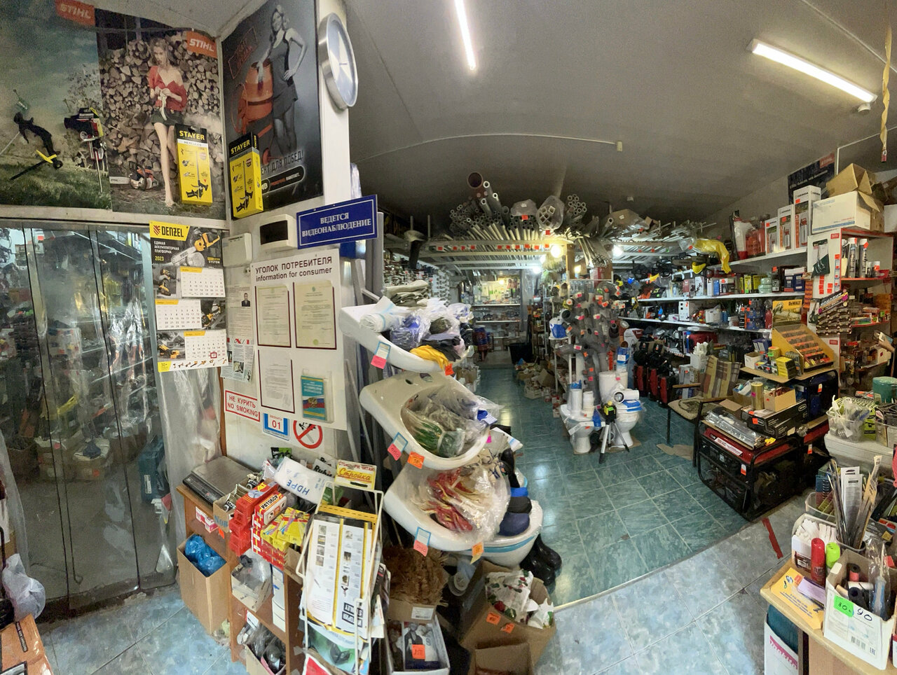 - Большой ассортимент инструментов и стремянок