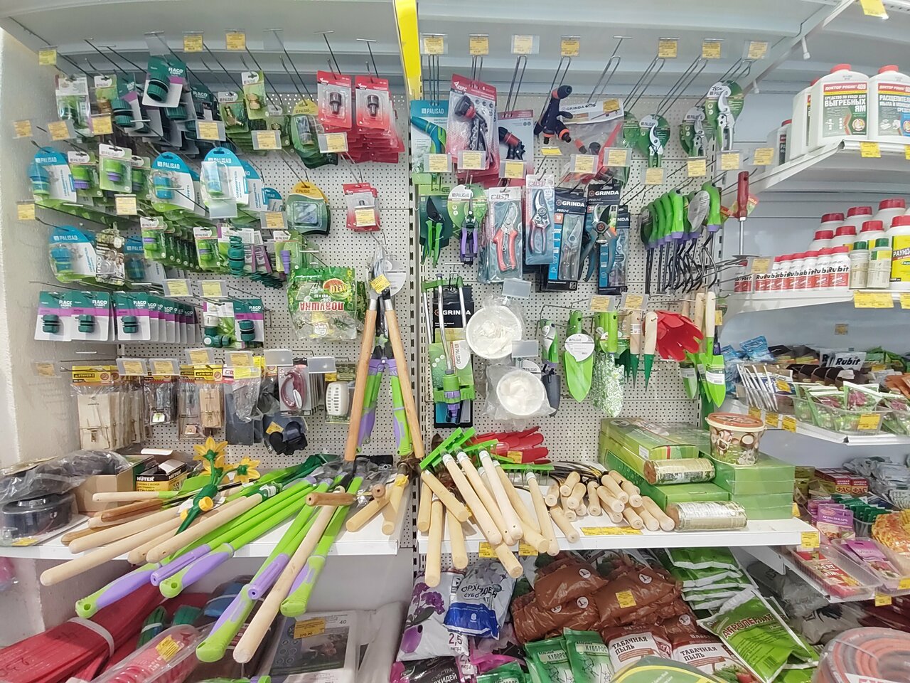 Есть практически всё. Цены в основном норм, но есть небольшие перегибы. Тем не менее один из самых популярных строительных магазинов в городе.