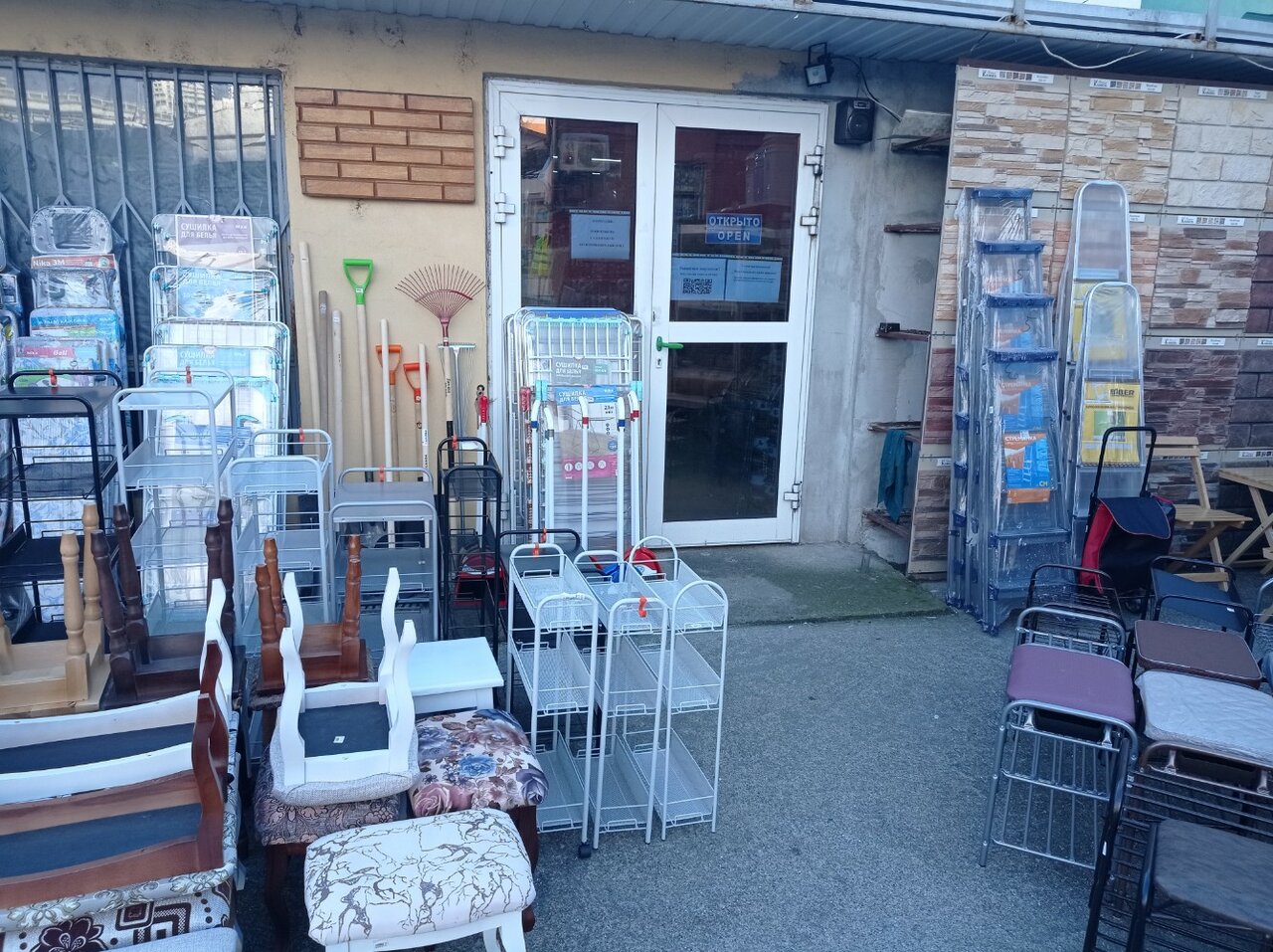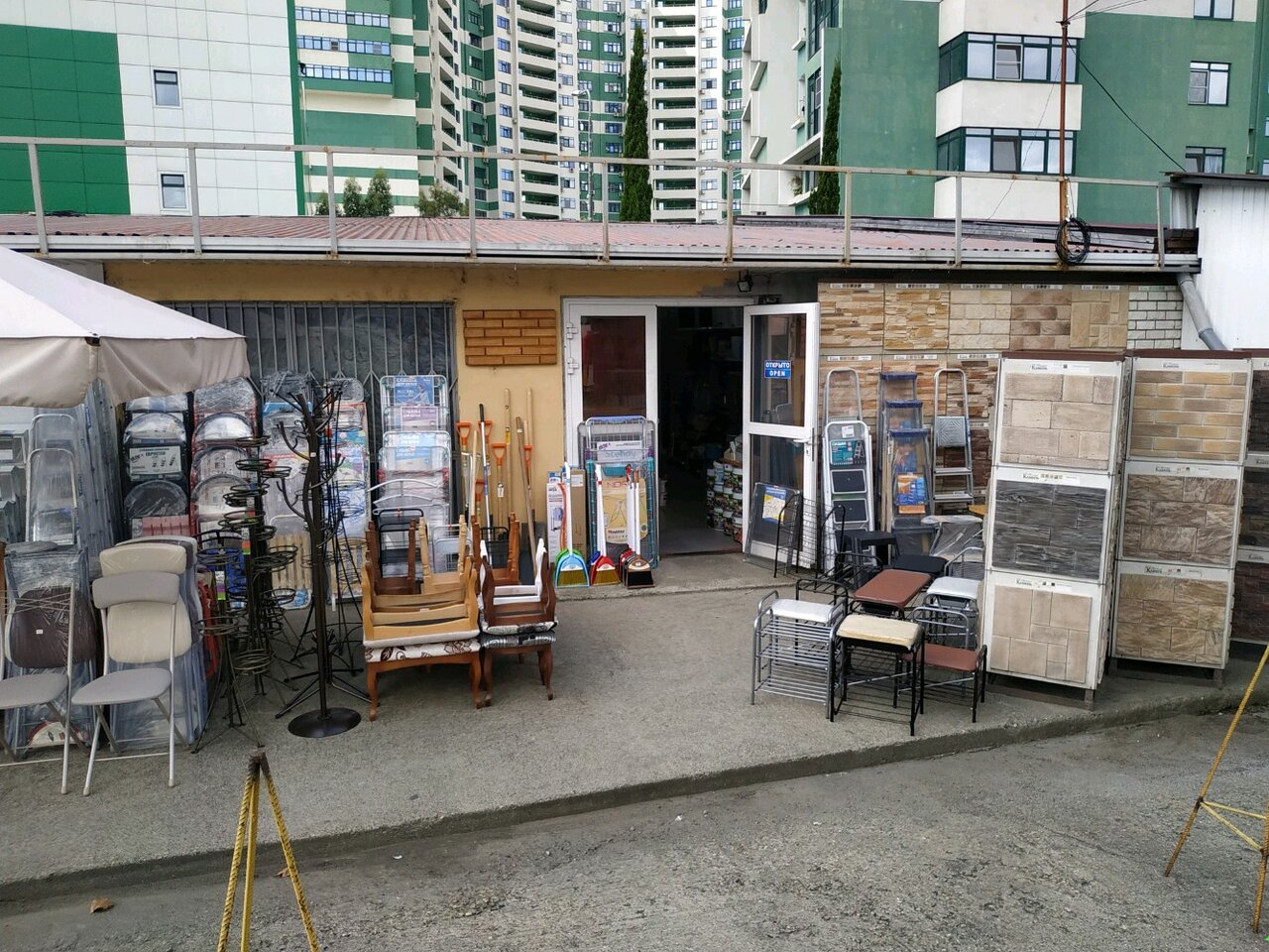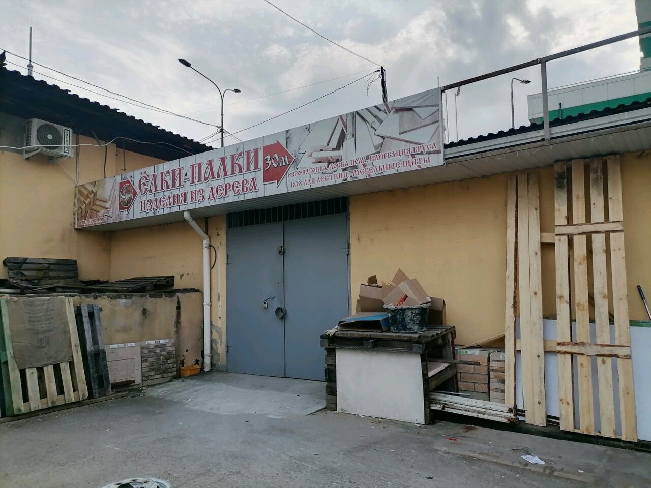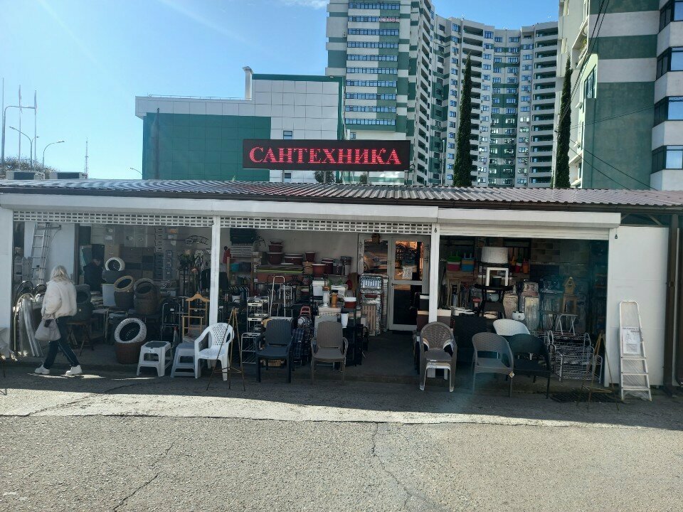 Трудно найти, со стороны как хозмаг со всяким барахлом. Поинтересовался вежливо у какого то завсегдатого — очень грубо ответил что лично мерял до входа 30метров. Ассортимент скудноват показался на обычную строганную доску сосновую. Есть и другие породы дерева, что непросто найти в Сочи.