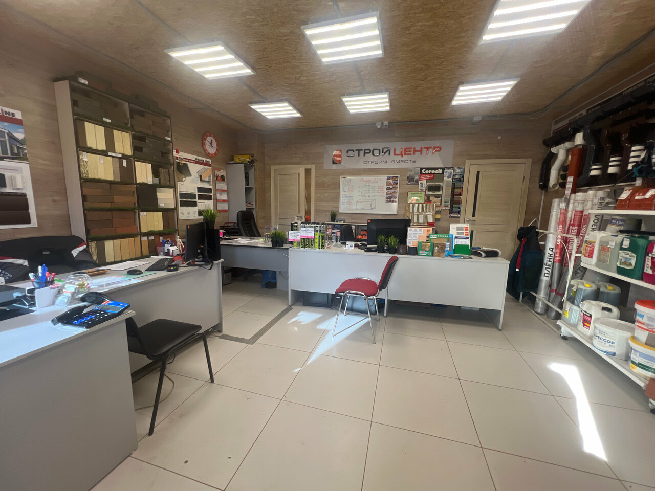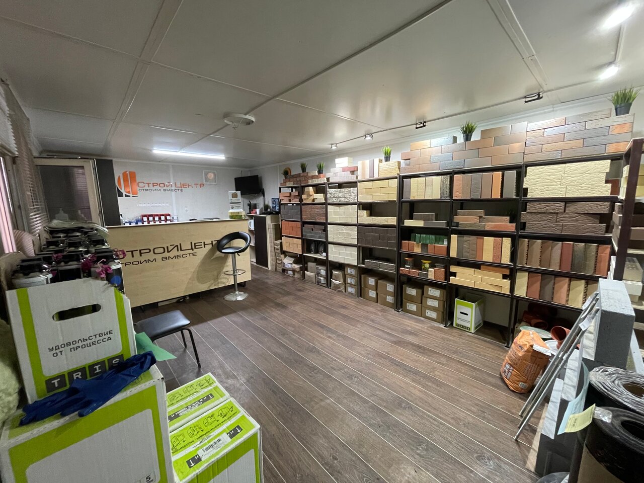 - Большой выбор стройматериалов (кирпич, смеси, шпаклёвка, грунтовка)