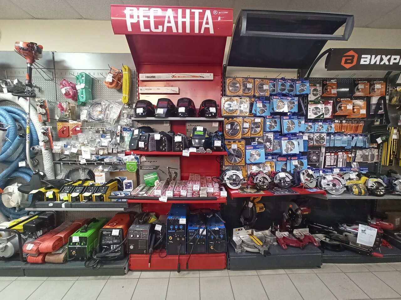 Большой выбор строительных материалов и расходники, много инструмента и запчастей к нему, есть товары для отдыха.