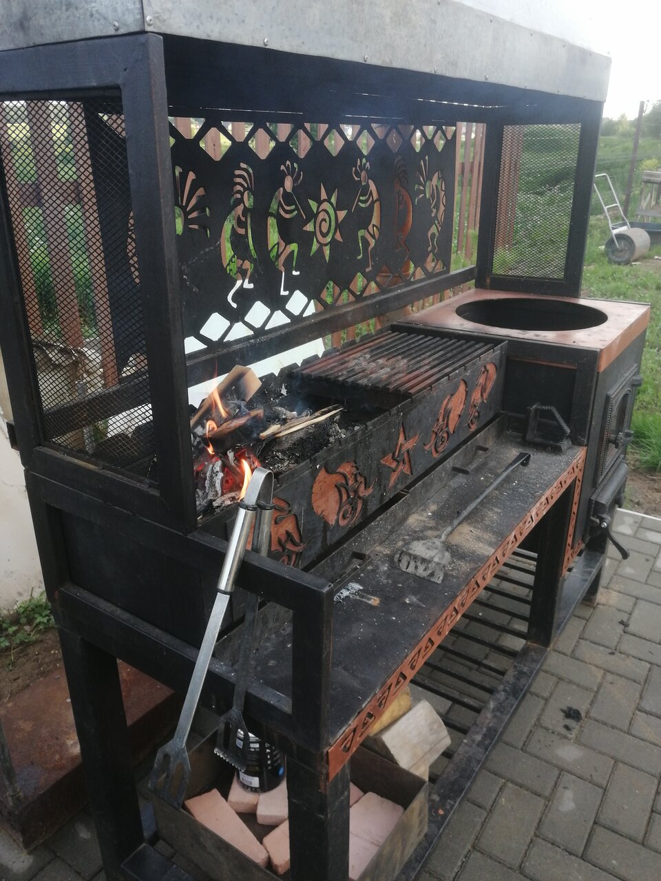 Ребята, какое чудо расчудесное умеет делать этот человек! Вы только посмотрите!! Это не просто костровая чаша, это произведение искусства! Восьмиугольная, 1 метр в диаметре, по нижним граням вырезаны символы Солнца и Луны во всевозможных ракурсах. А на крышке все 8 граней в знаках зодиака челнов нашей семьи в 2х поколениях-родителей и наших. Так что у нас не просто костёр для посиделок, а и культурный экскурс. Герман, спасибо тебе, ты-восьмое чудо света)))