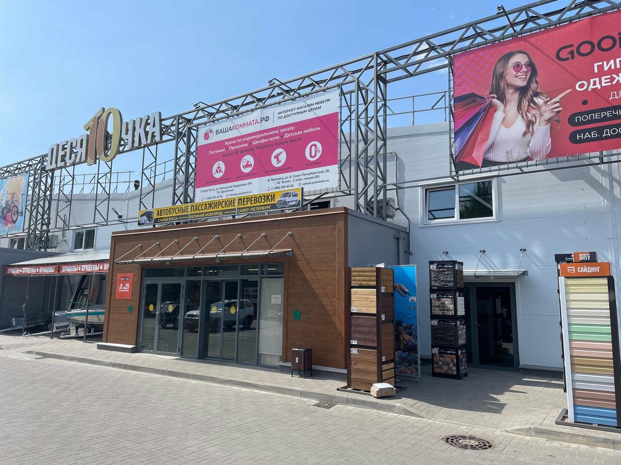 «Десяточка» — строительный магазин в Старой Руссе (ул. Латышских Гвардейцев, 40А), предлагающий материалы для ремонта и отделки: газобетон, люки, полиуретановую лепнину, стеновые панели и природный камень. Работает ежедневно с 08:00 до 20:00. Контакты: сайт (https://10cka.ru/), телефон +7 (81652) 5-21-21.