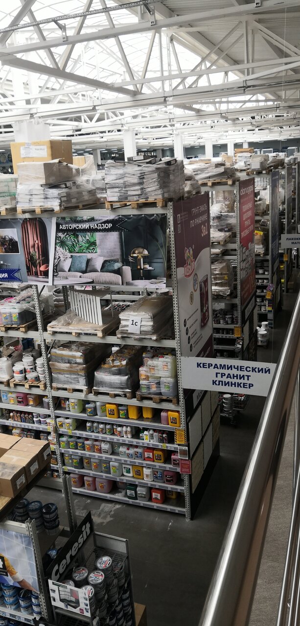Огромный ассортимент для ремонта и отделки. Интересно представлены образцы товара: возможные варианты отделки и т.д. Грамотный, вежливый персонал. Здесь можно купить всё — от самореза до душевой кабины на любой вкус.