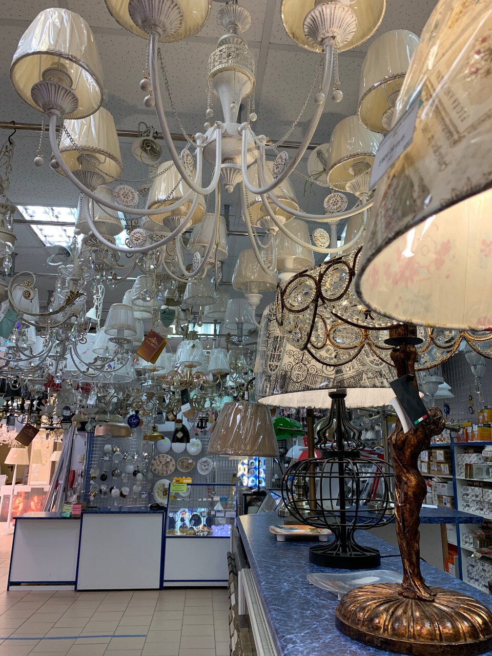 - Большой выбор электротоваров, люстр, светильников