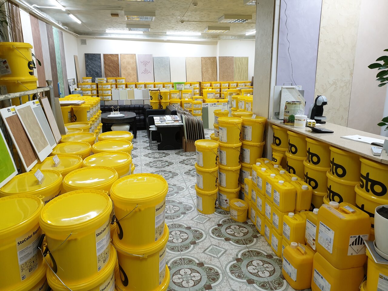 Работают специалисты, угостят кофе, проконсультируют по любому вопросу: от краски и колера до устройства Вселенной ))) Цены высоковаты, но это компенсируется качеством продукции. И главное — хранят архив Ваших покупок (какую краску брали, какой цвет и количество) за долгие годы.