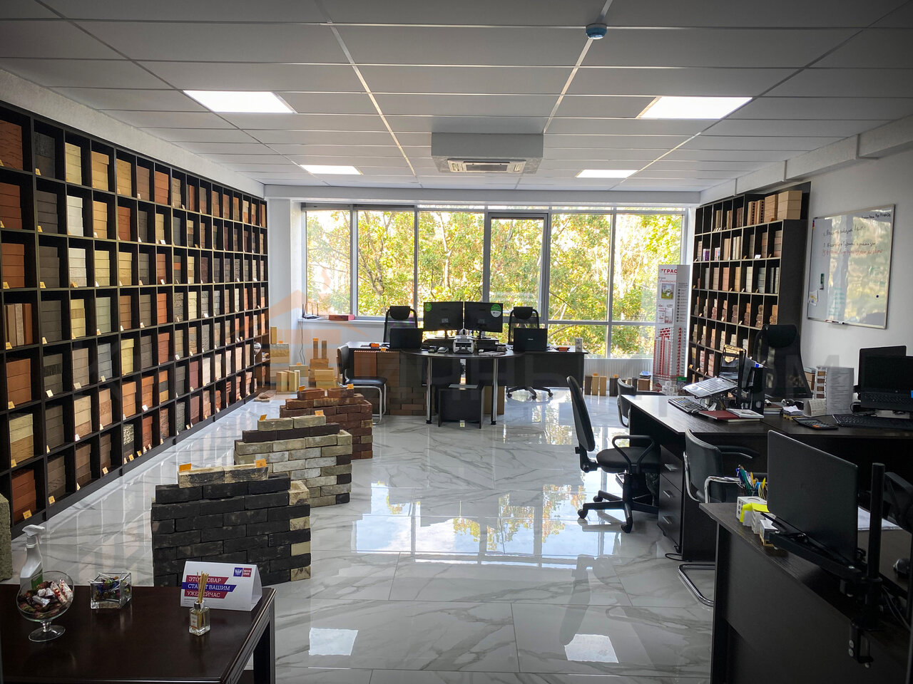 - Удобный офис с образцами товаров