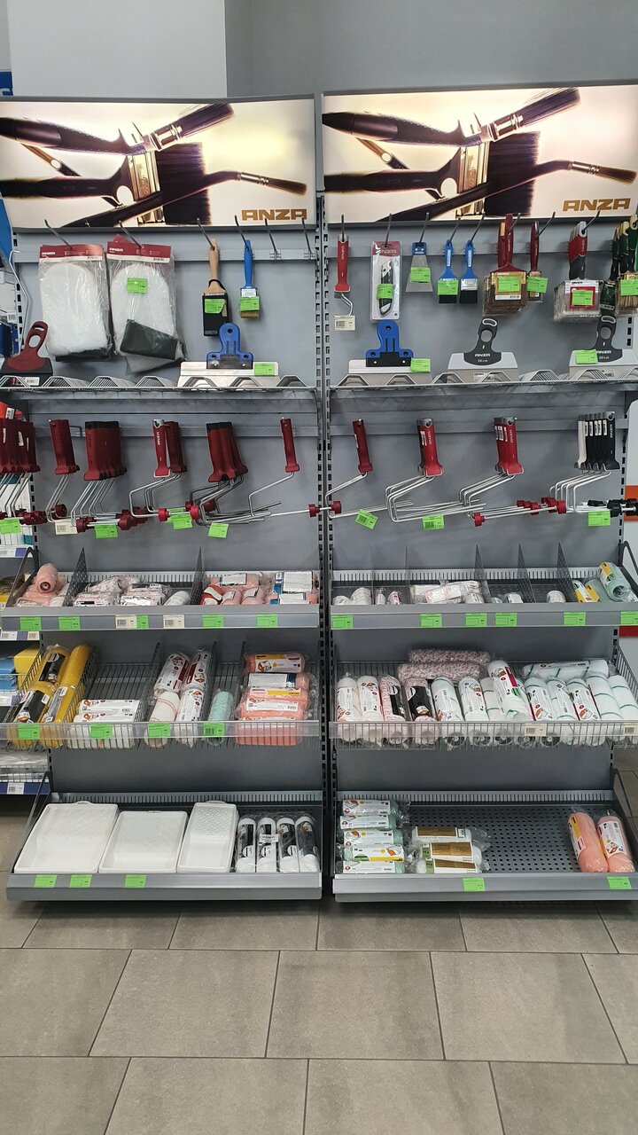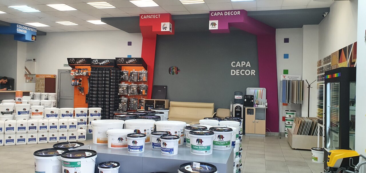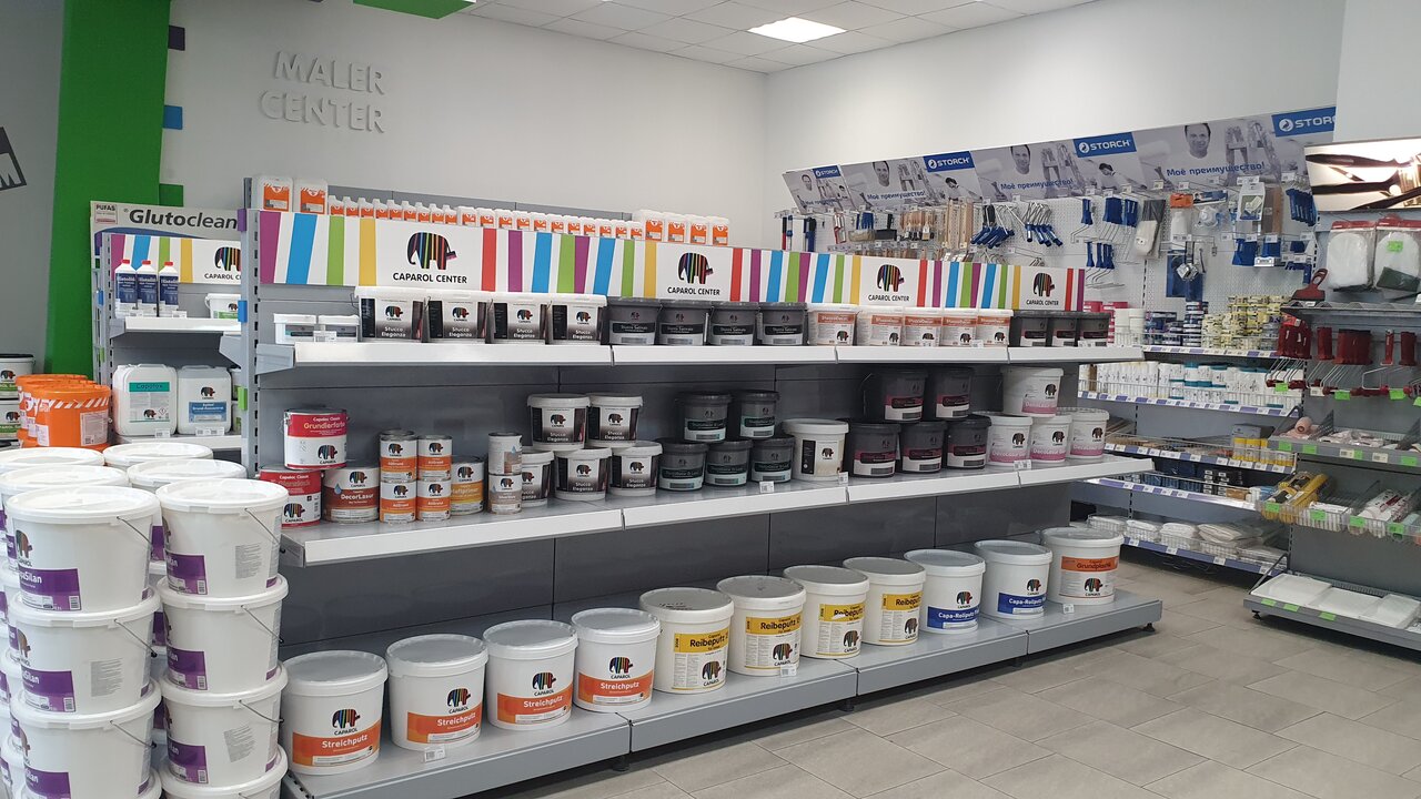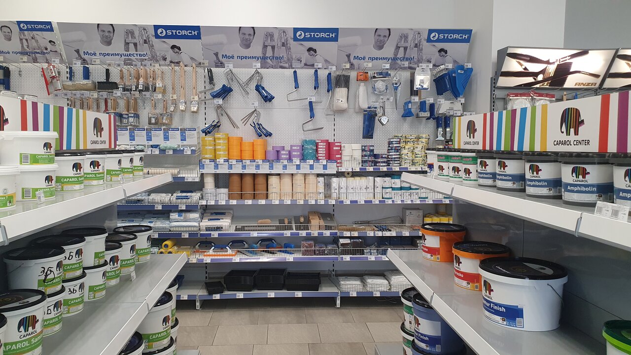 - Грамотный и помогающий персонал; Хорошие цены; Качественное выполнение работы; Широкий выбор продукции (Caparol, Storch, Wagner, Neo Tools); Вежливый и доброжелательный персонал
