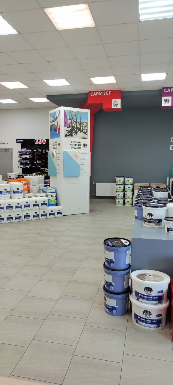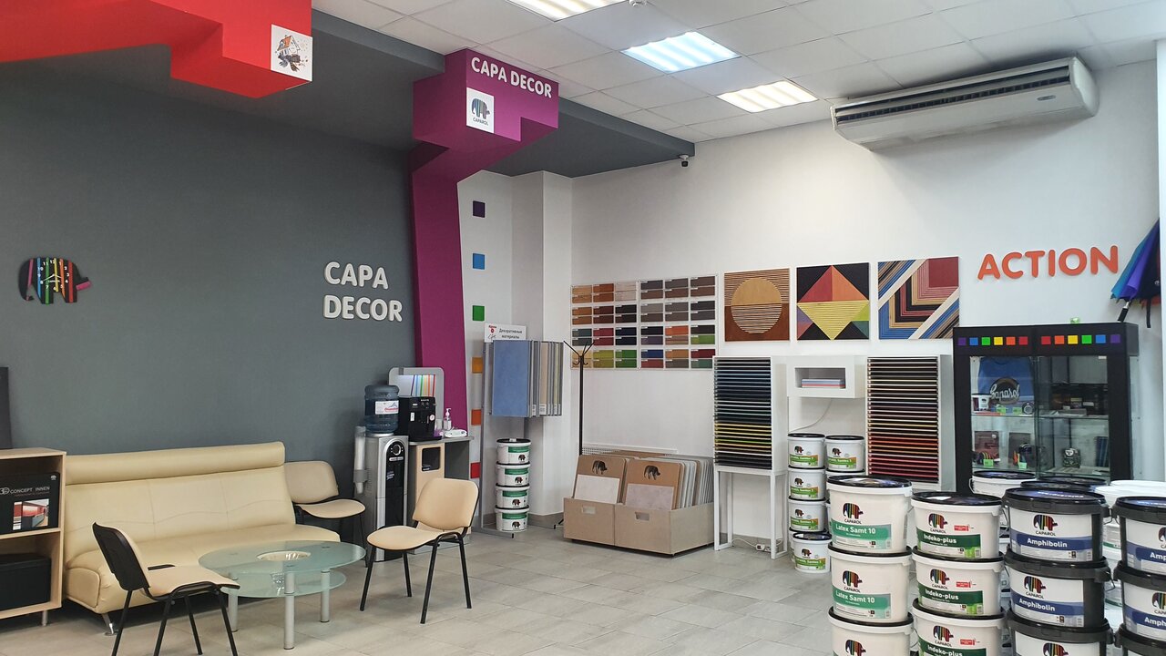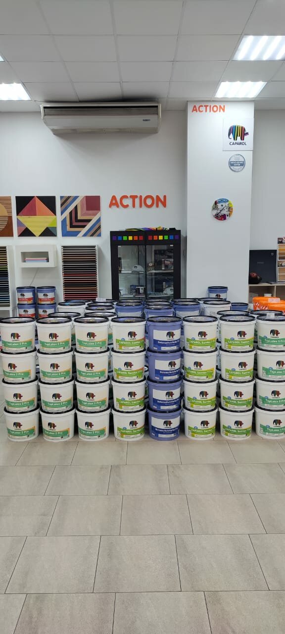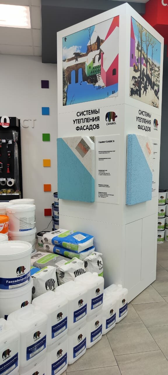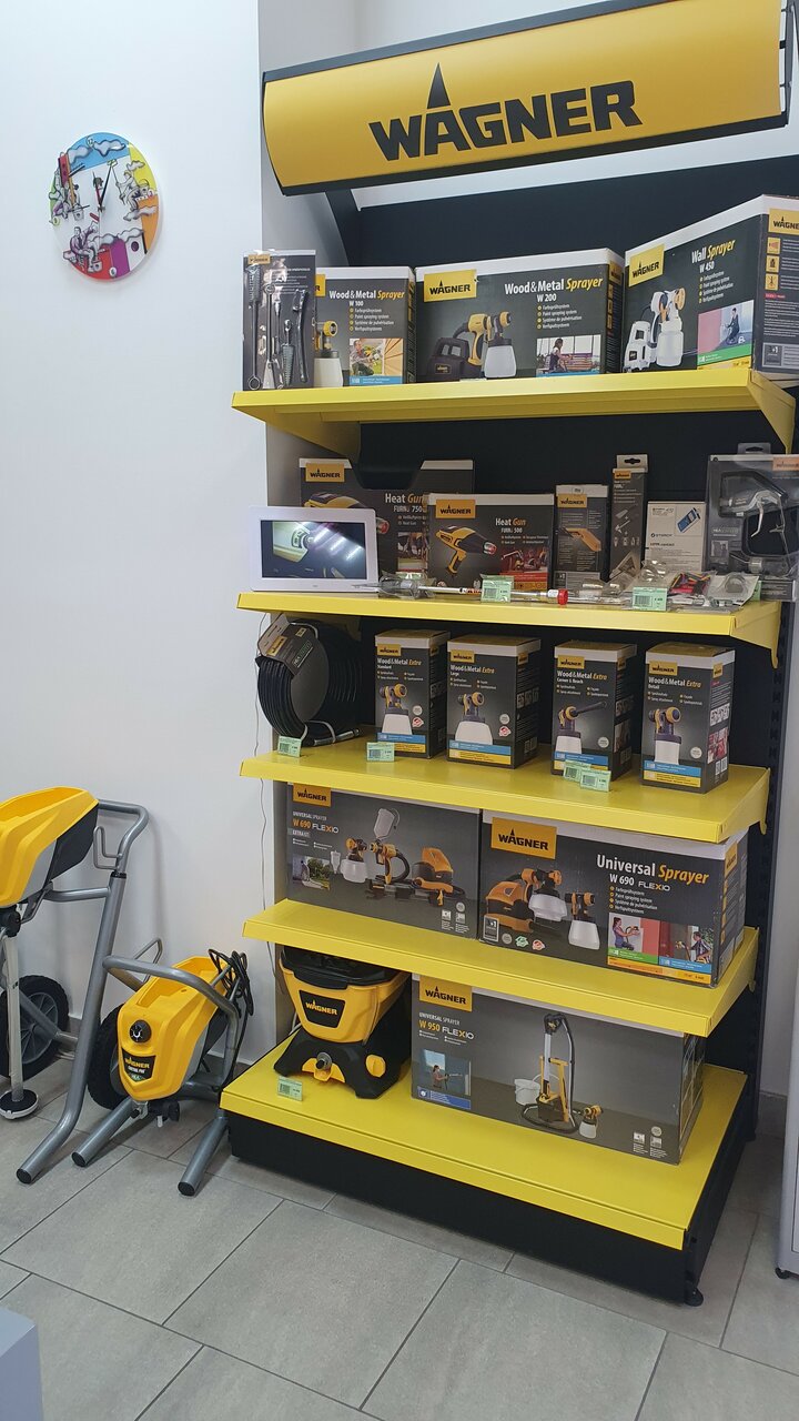 - Грамотный и помогающий персонал; Хорошие цены; Качественное выполнение работы; Широкий выбор продукции (Caparol, Storch, Wagner, Neo Tools); Вежливый и доброжелательный персонал
