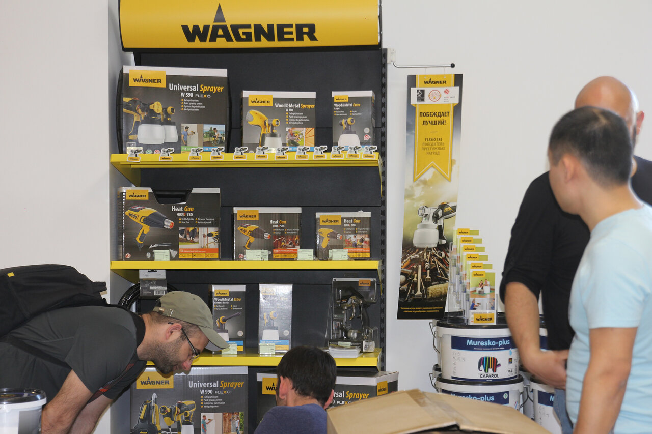 - Широкий выбор продукции (Caparol, Storch, Wagner, Neo Tools)