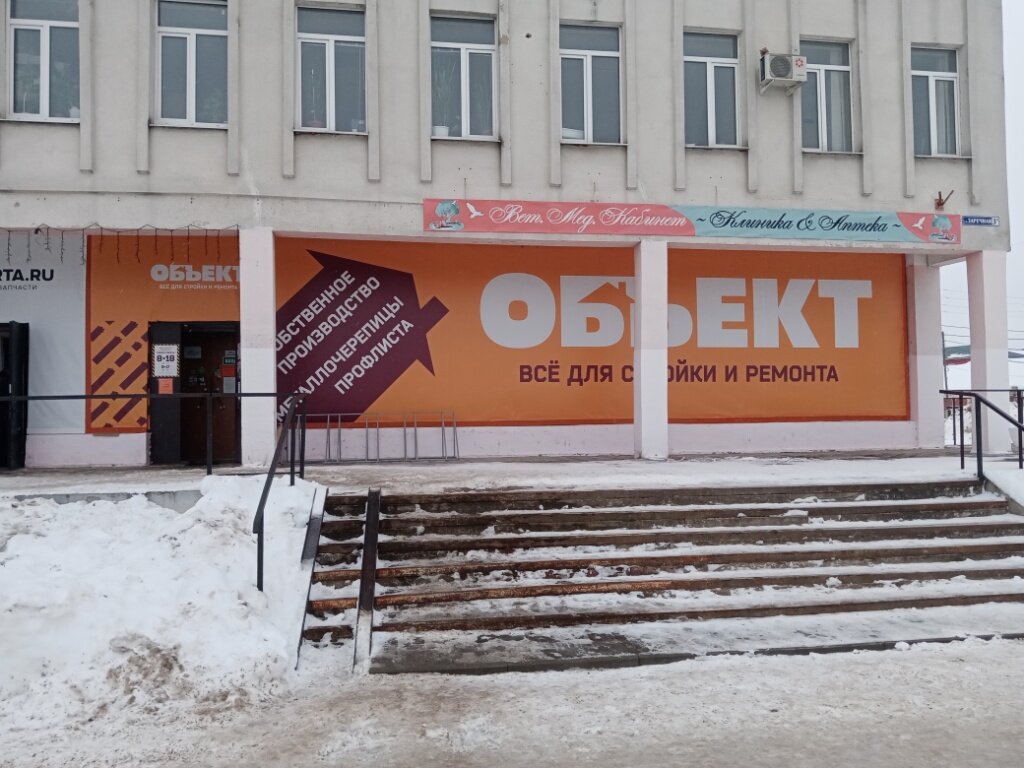 Магазин «Объект» расположен по адресу: г. Судогда, ул. Заречная, 3А. Специализируется на продаже строительных и отделочных материалов, включая газобетон, шлакоблоки, кровельные покрытия (фальц, сланец, шифер, черепица, профнастил, мягкая кровля), а также композитные панели, ЦСП и асбест.