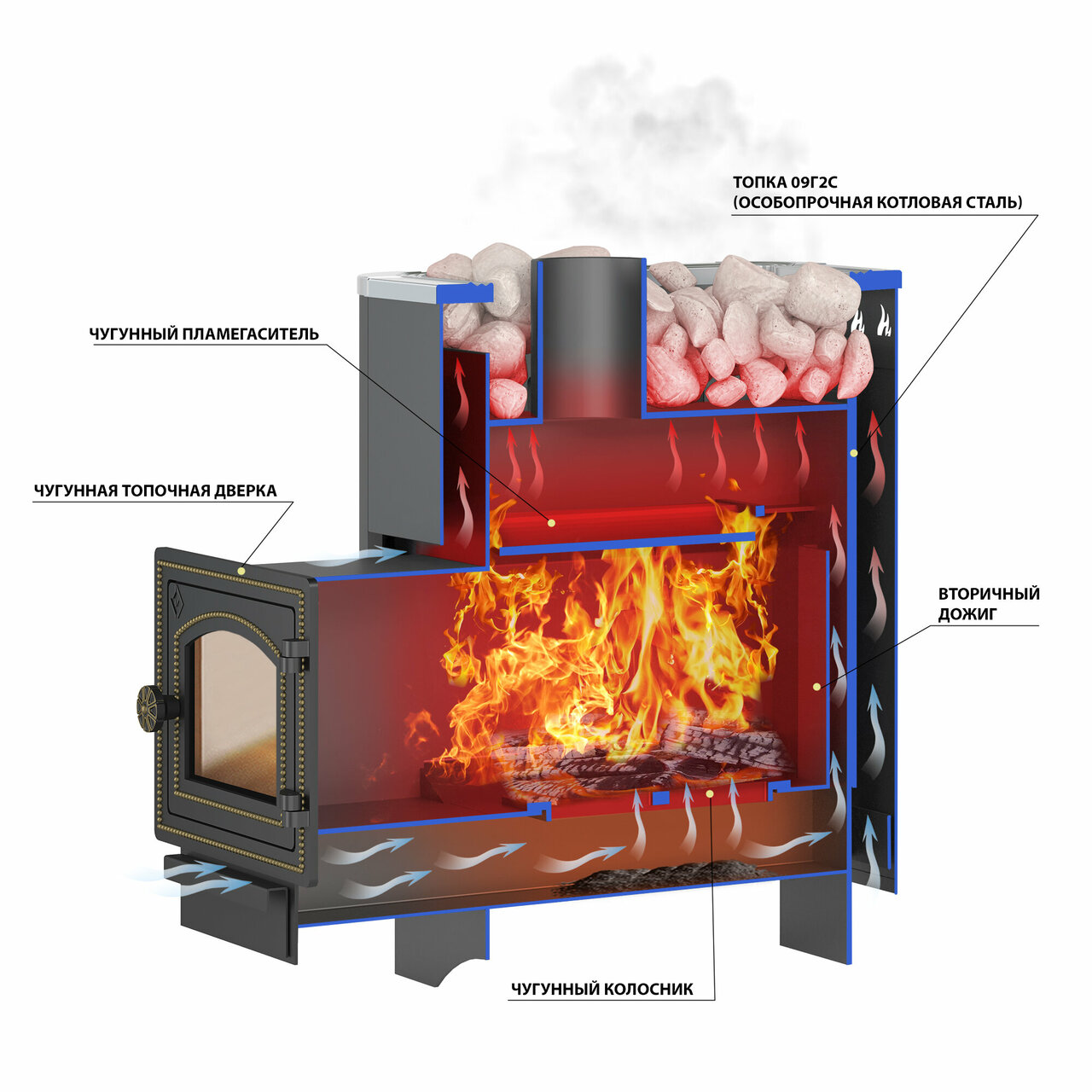 - Широкий ассортимент для печей, каминов, бань, коптилен