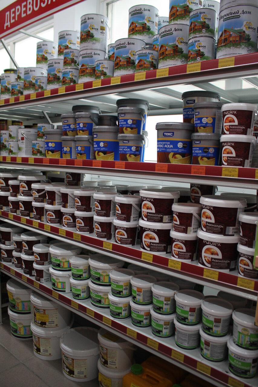 - Попадаются просроченные товары (краски, пропитки)