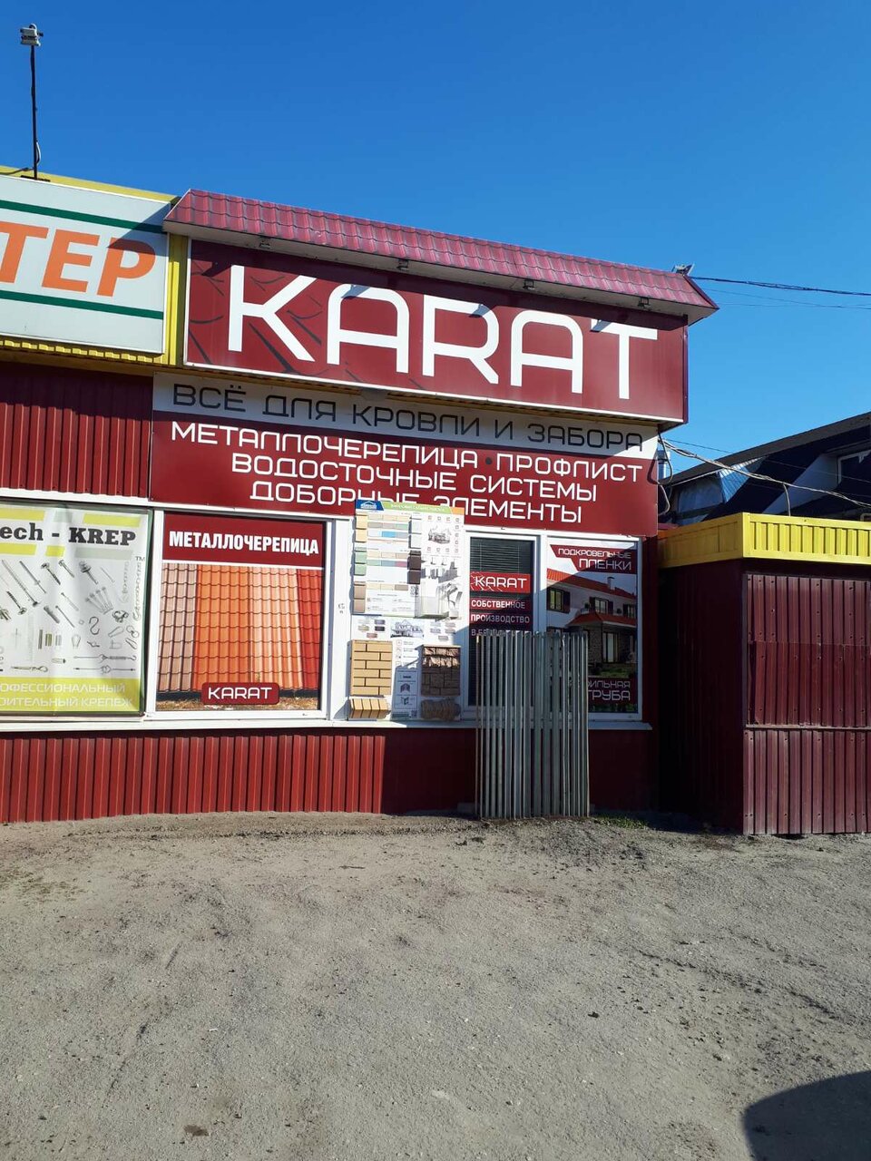 Карат — строительный магазин в поселке Свень, расположенный по адресу: ул. Снежетьский Вал, 4А. Специализируется на продаже кровельных материалов, включая черепицу, профнастил и металлочерепицу. Режим работы: пн-пт 09:00–18:00, сб 09:00–15:00. Контакты: +7 (4832) 67-68-57, сайт: (https://gkkarat.com/).