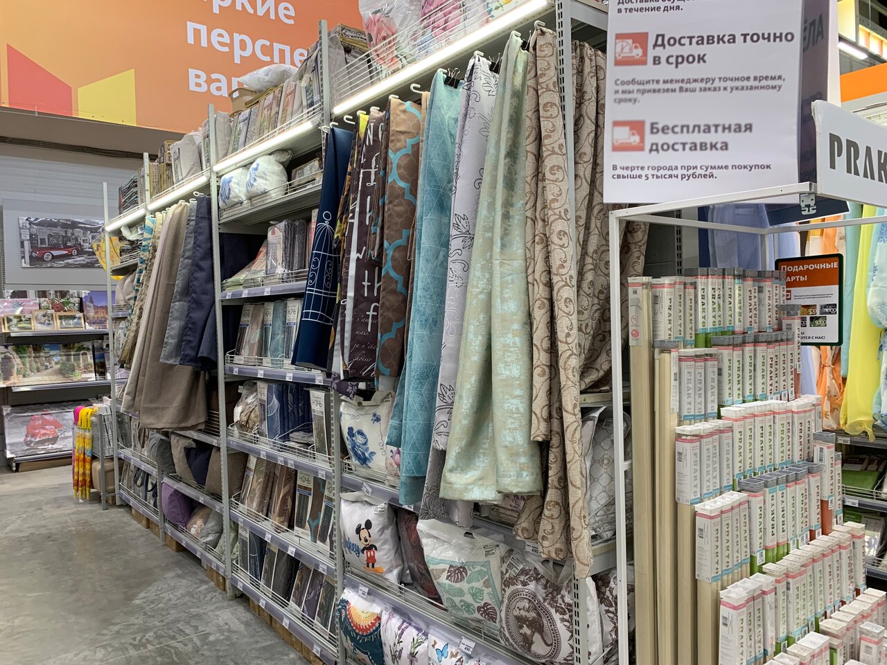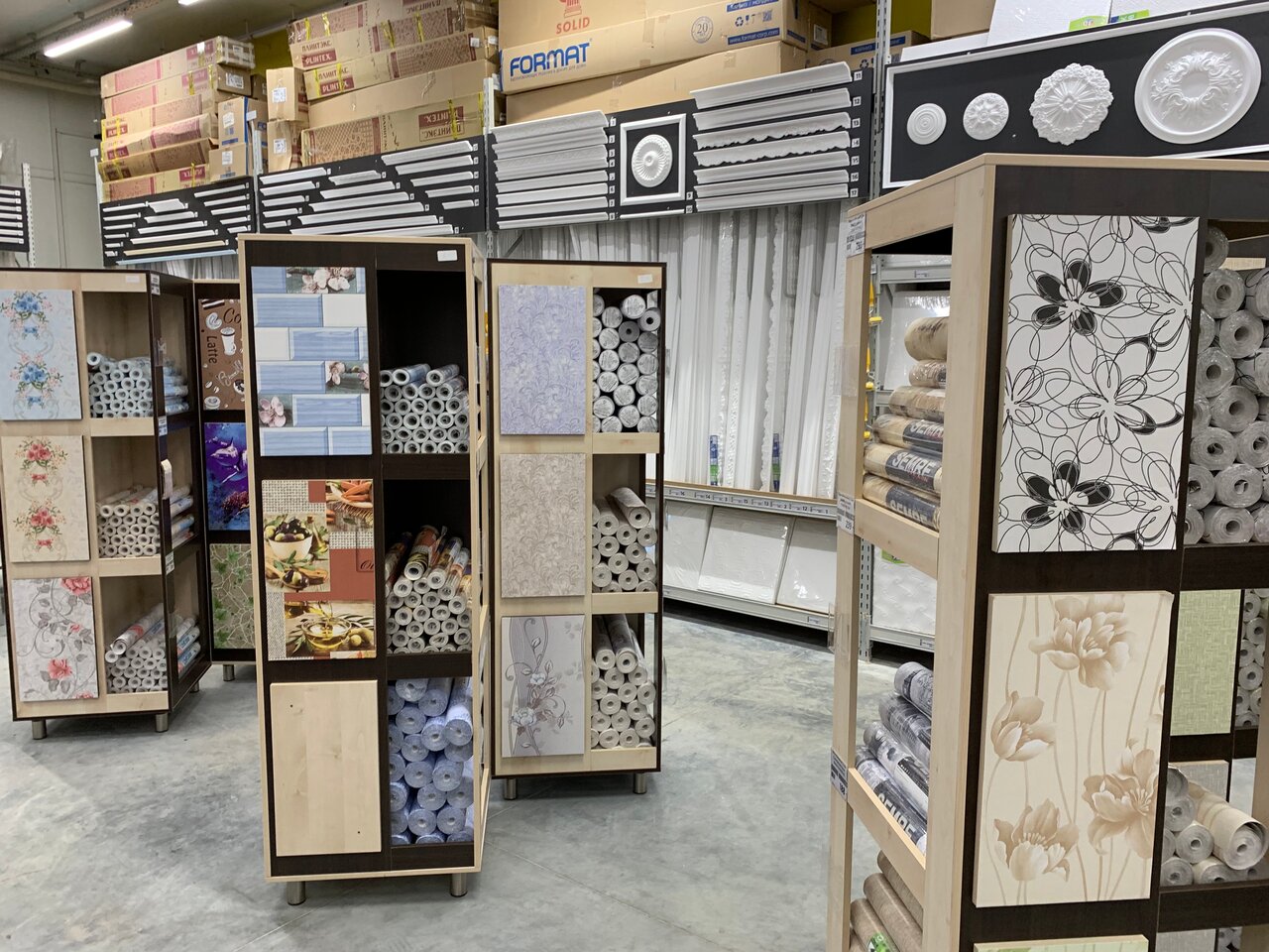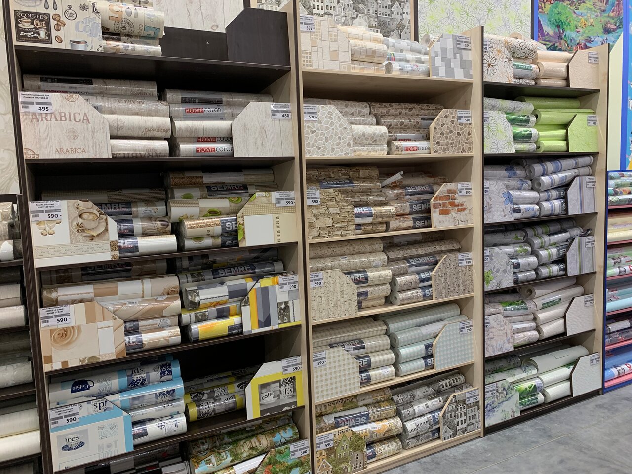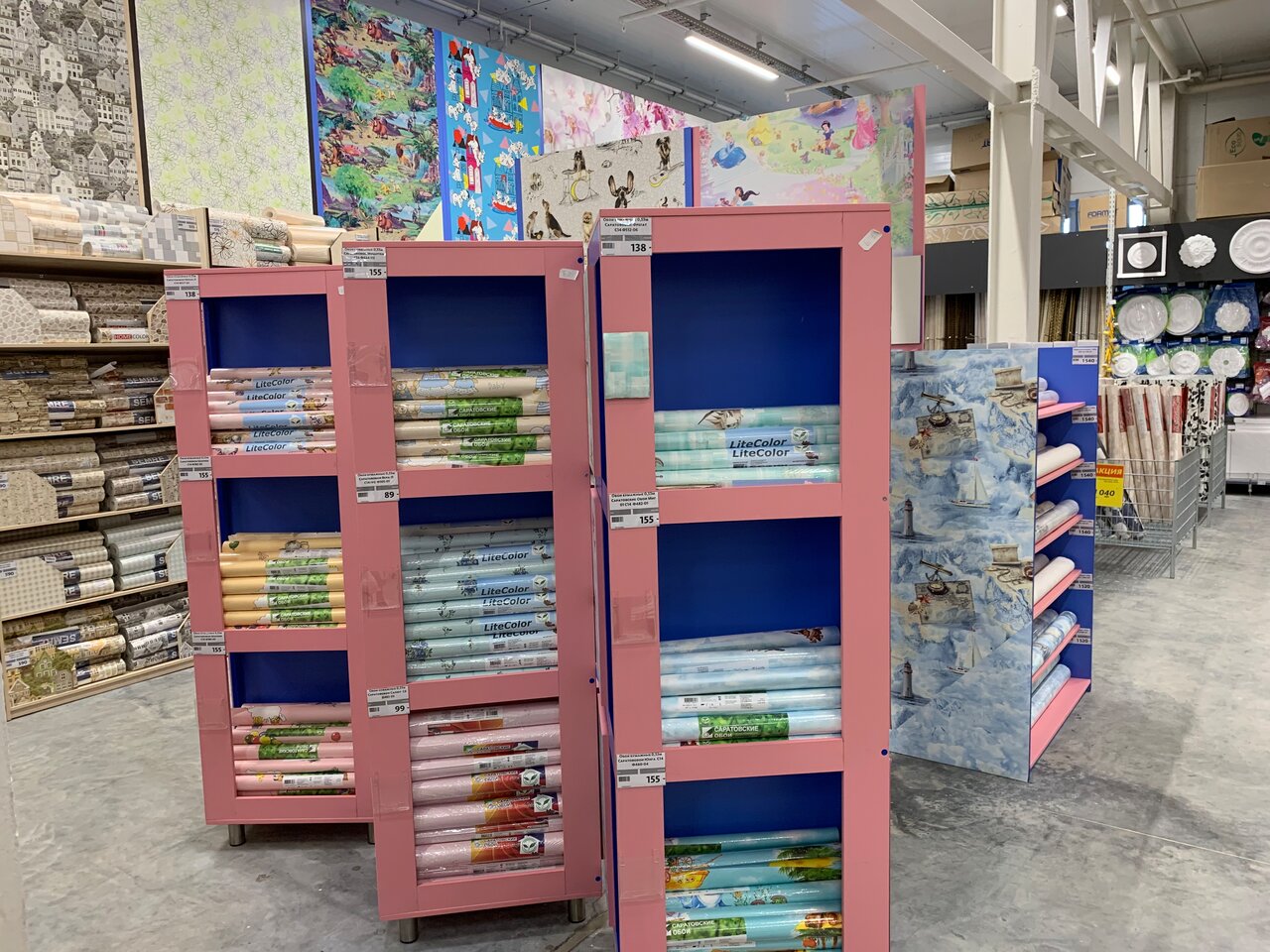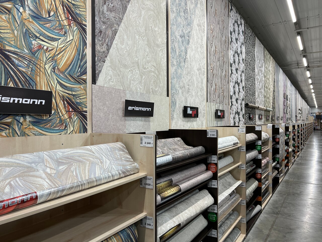 - Огромный ассортимент товаров (например, более 1500 видов обоев)