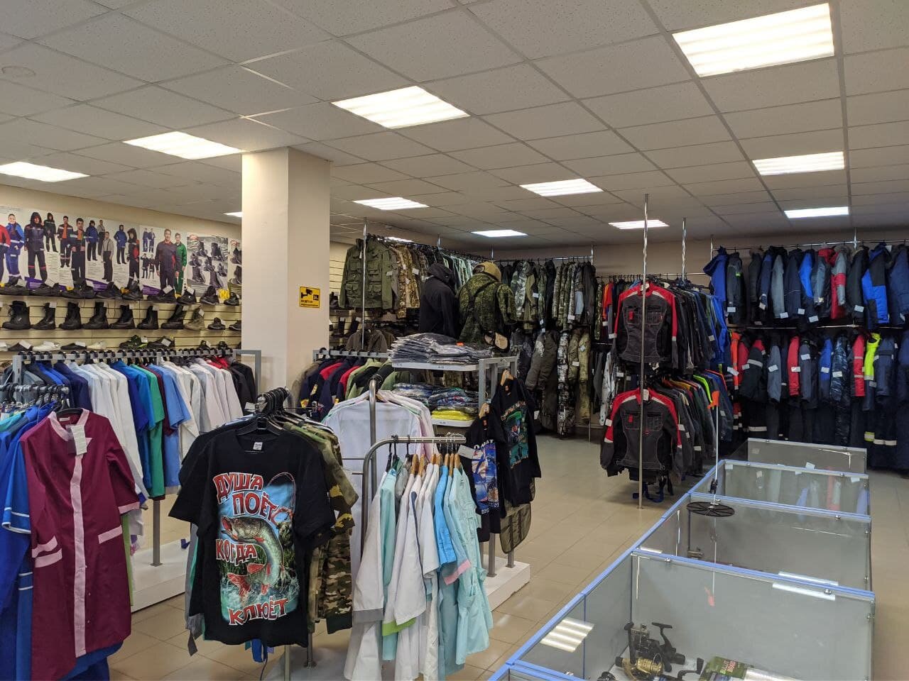 - Можно выбрать спецодежду и стройматериалы; Хорошая одежда; Продавцы знают ассортимент (в некоторых случаях); Недорого; Учтивые продавцы (в некоторых случаях)