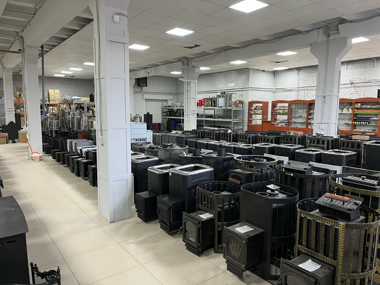 Очень много разных банных печей, на любой кошелек, не только печи но и баки разной литражности, камни для печек, аксессуары, веники, да много чего можно найти. Если нет в наличии, можно заказать.