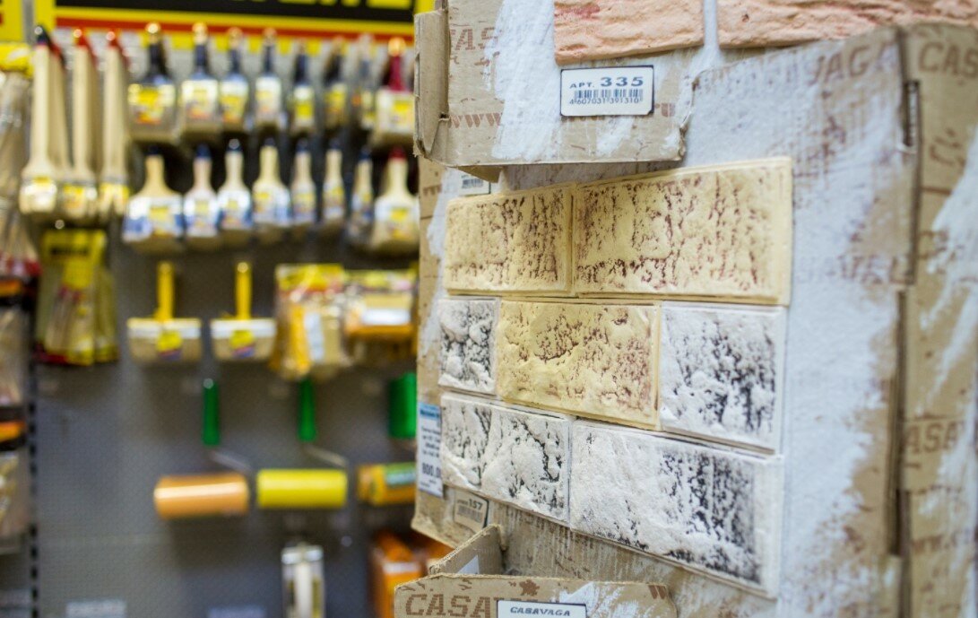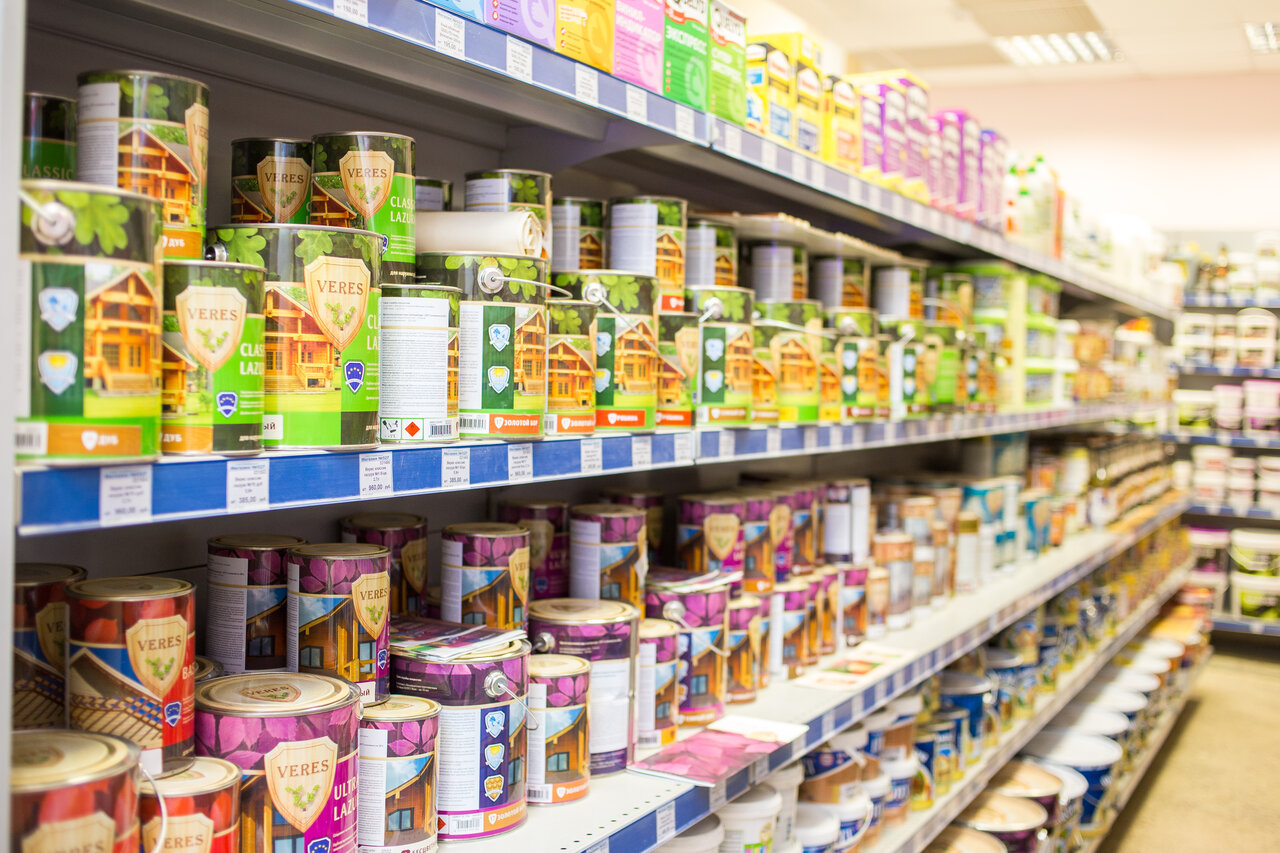 - Большой ассортимент товаров (от гвоздей до обоев, электрики и т. д.)