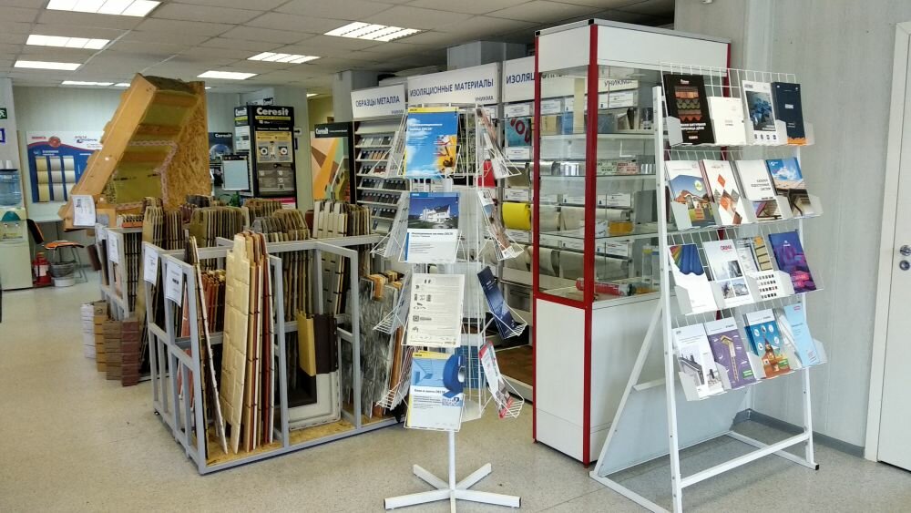 Нормальный магазин. Большой выбор кровельных материалов. Все хорошо представлено на макетах. Сама фирма крупная — может чуть дороже чем в других местах но с нормальным обслуживанием и гарантией поставки.