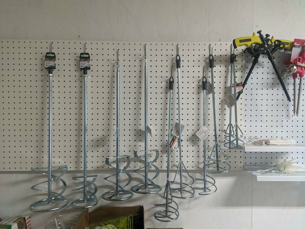 Усиленная конструкция. Насадка на перфоратор для перемешивания особо вязких и тяжелых строительных смесей. Хвостовик SDS PLUS. Материал: инструментальная сталь, цинковое покрытие.