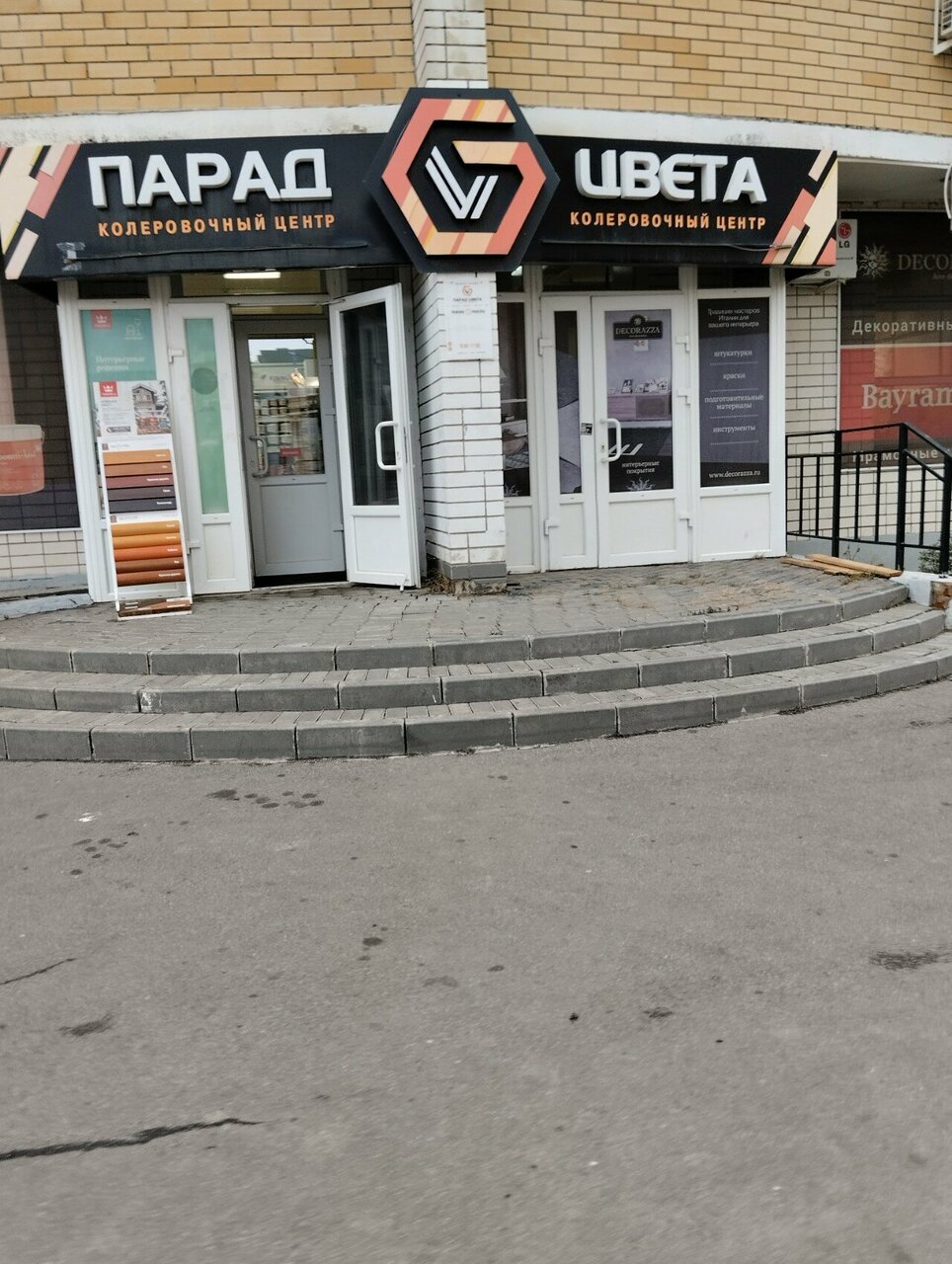«Парад цвета» — строительный магазин в Тамбове, расположенный по адресу ул. Агапкина, 13. Специализируется на колеровке красок и продаже материалов для ремонта. Режим работы: пн–пт 09:00–19:00, сб–вс 09:00–17:00. Контакты: +7 (4752) 50-14-80, сайт: (http://парадцвета.рф/katalog).