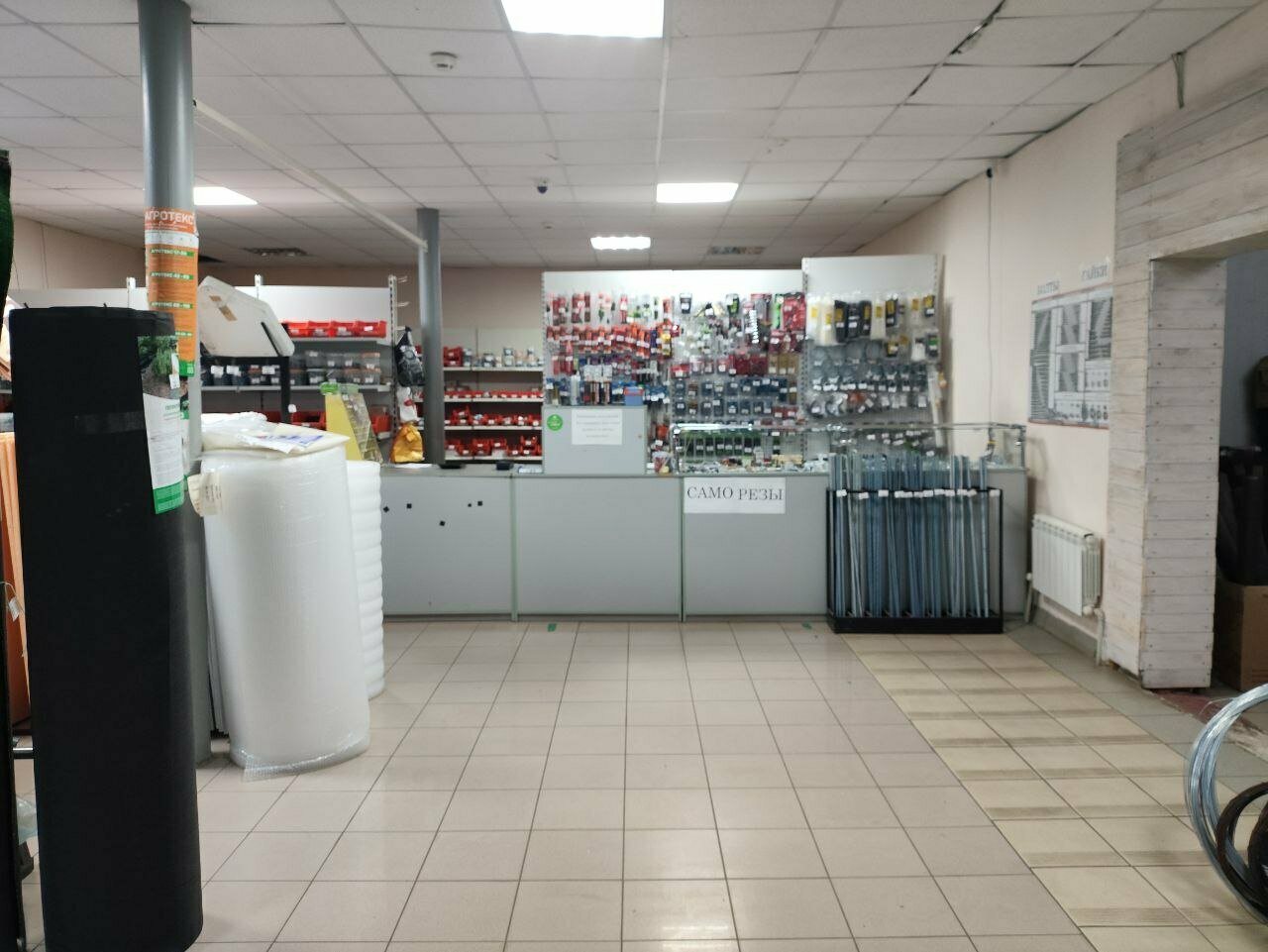 - Большой ассортимент товаров для строительства и ремонта; Средние цены (относительно других магазинов); Помощь от директора (безвозмездная выдача инструментов и материалов); Наличие полезных мелочей (клей, метизы, сетка и т. д.); Удобный въезд и парковка