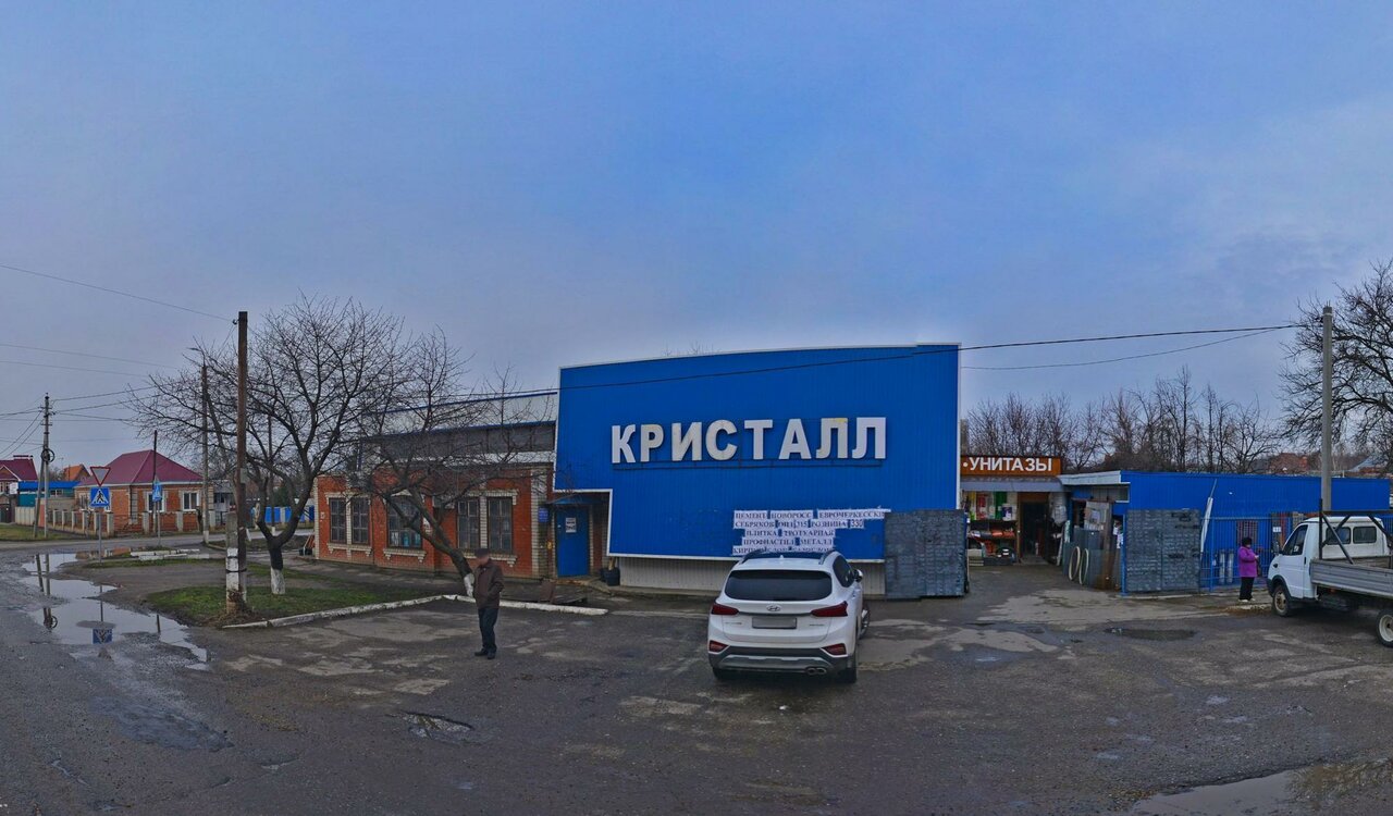 «Кристалл» — строительный магазин в Тихорецке, расположенный по адресу ул. Гоголя, 60. Предлагает широкий ассортимент материалов, инструментов и товаров для строительства, ремонта и отделки. Работает ежедневно с 08:00 до 18:00. Контактный телефон: +7 (86196) 5-08-04.