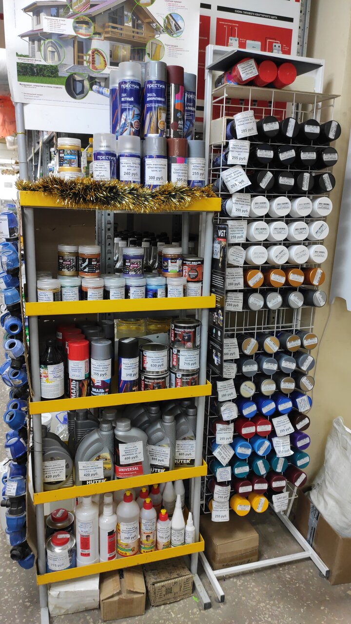 - Большой ассортимент товаров для дома, гаража и стройки