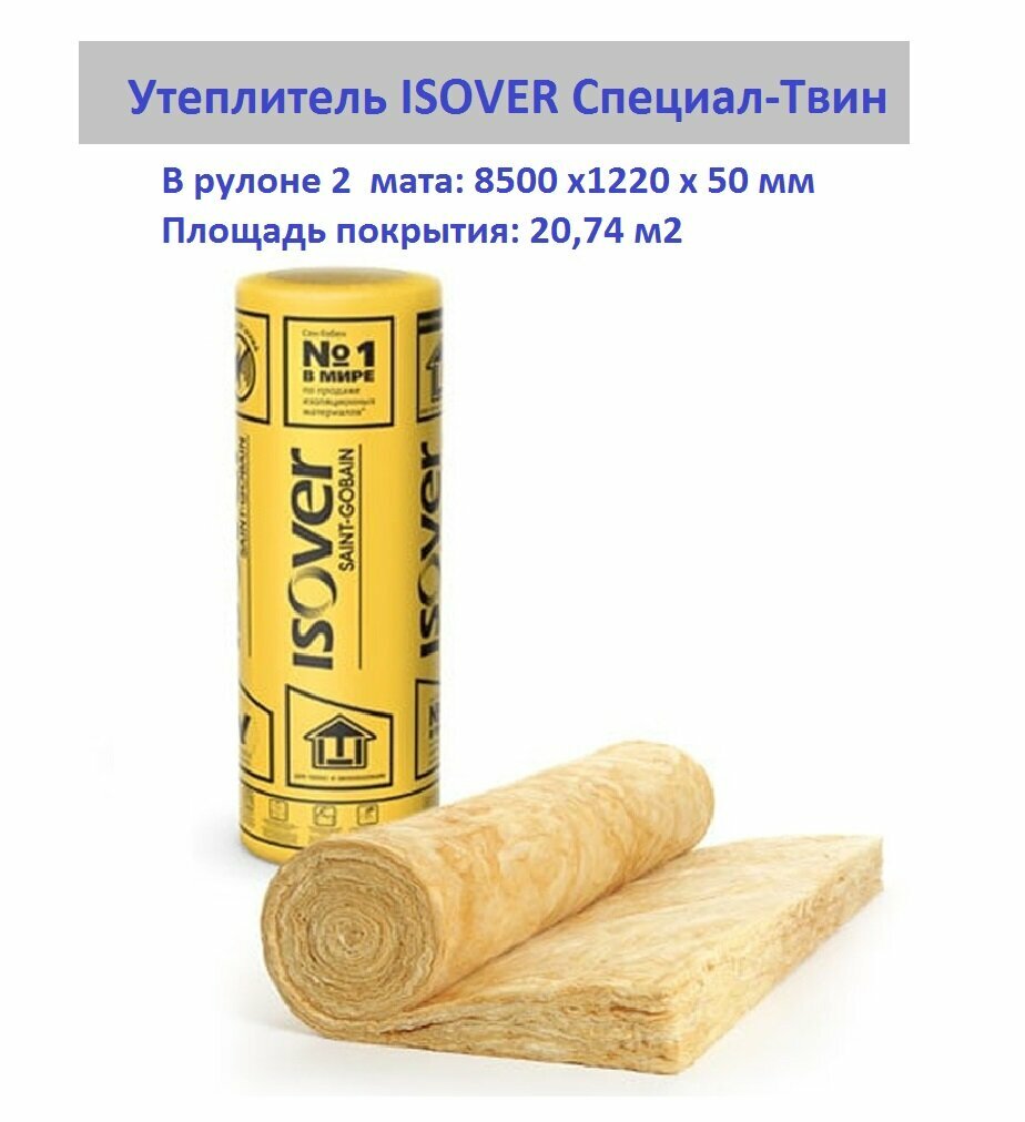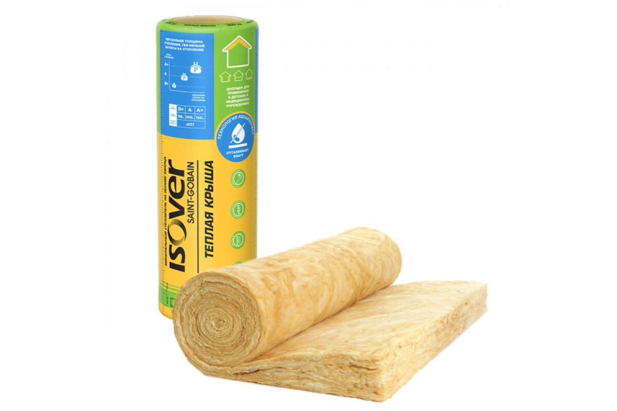 - Рулонный утеплитель ИЗОВЕР Теплый Дом Твин 5490х1220х50 мм (в рулоне: 2 мата по 50 мм; 13,4 м2; 0,67 м3) 118₽