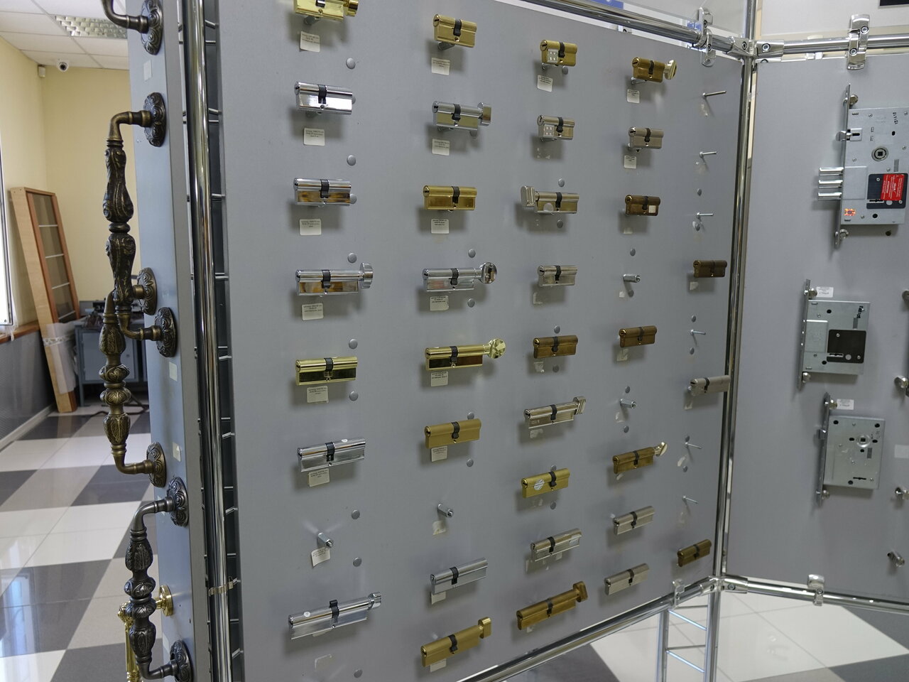Много выбора замков и ручек. Профессиональные продавцы, всегда помогут в подборе замка. Отличный отдел.