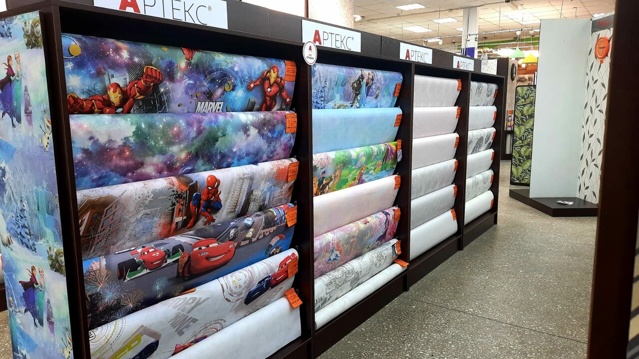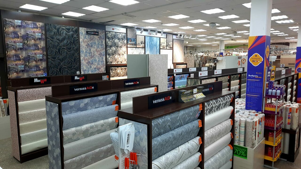 Строительный гипермаркет, магазин обоев, линолеум