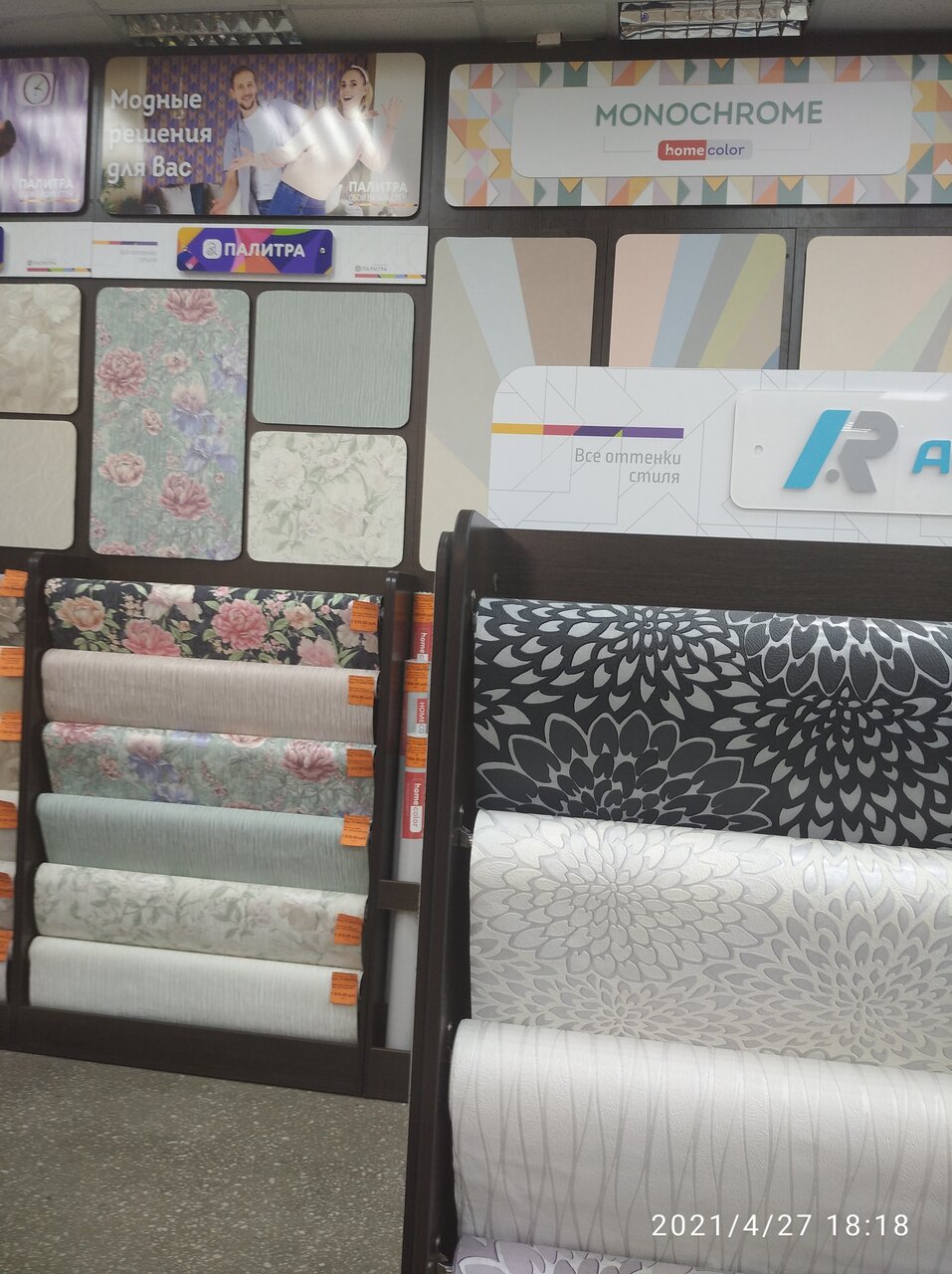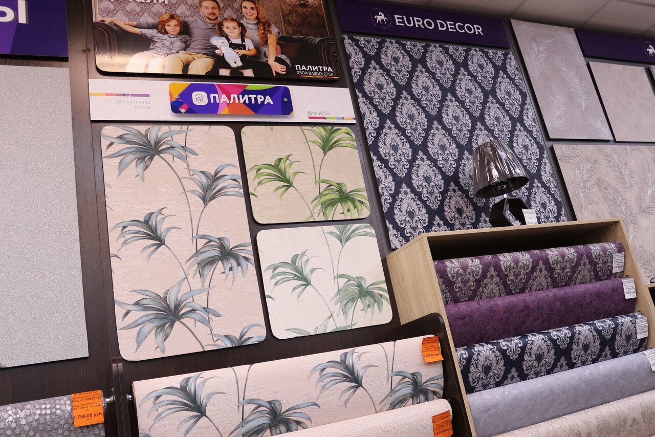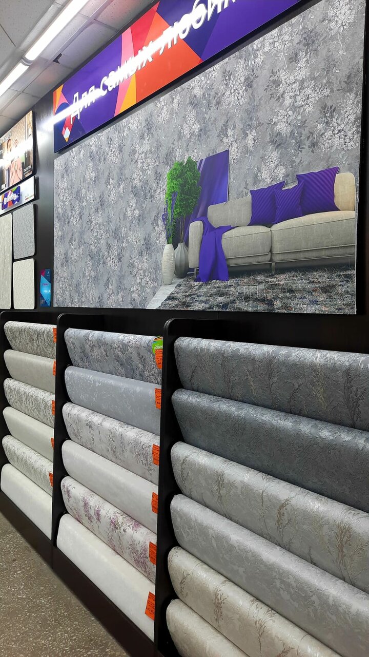 Большой выбор, приветливый персонал, помогают в выборе и расчете количества рулонов.
