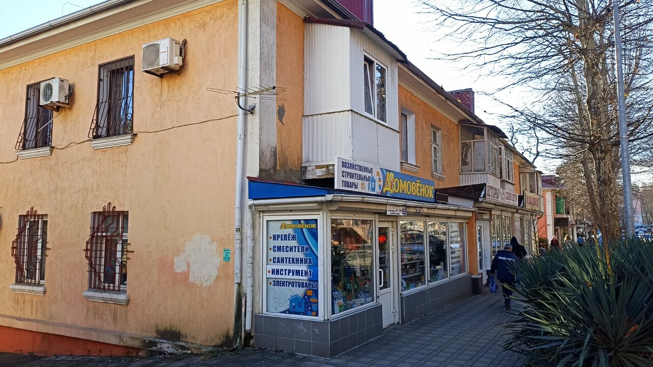 «Домовёнок» — строительный магазин в Туапсе (ул. Софьи Перовской, 16), предлагающий широкий ассортимент инженерной сантехники и сопутствующих товаров для ремонта и строительства. Режим работы: пн-пт 09:00–17:45, сб 09:00–16:55, вс 09:00–15:45. Контакты: