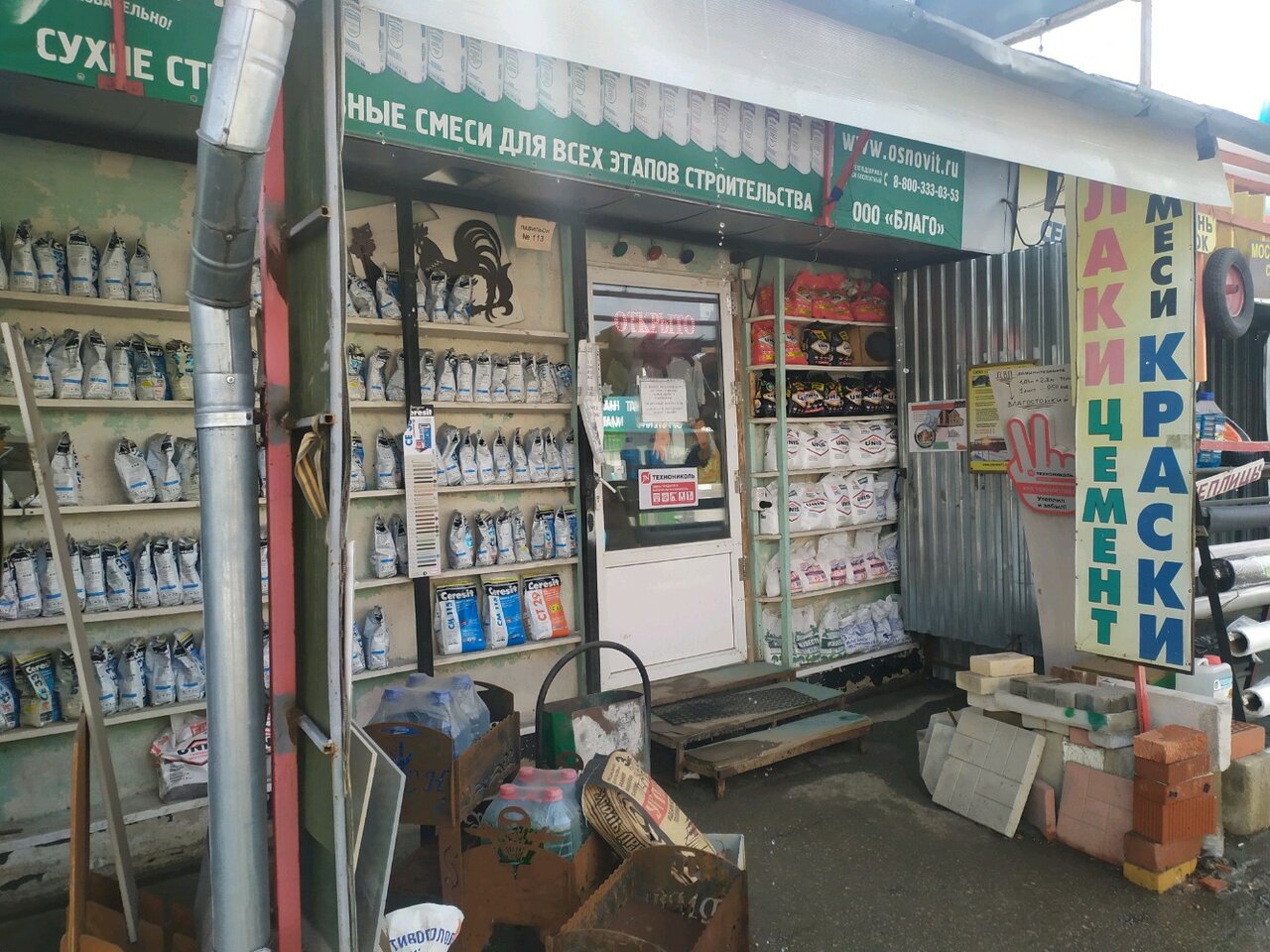 Строительный магазин «Благо» в Туле (пр. Ленина, 167) предлагает широкий ассортимент материалов для строительства и отделки: газобетон, шлакоблоки, ЦСП, асбест, алюминиевые панели, скрытый плинтус, лепнину из полиуретана, люки, мраморную крошку, природный камень и стеновые панели. Режим работы: ежедневно с 08:00 до 18:00. Контактный телефон: +7 (920) 777-17-35.