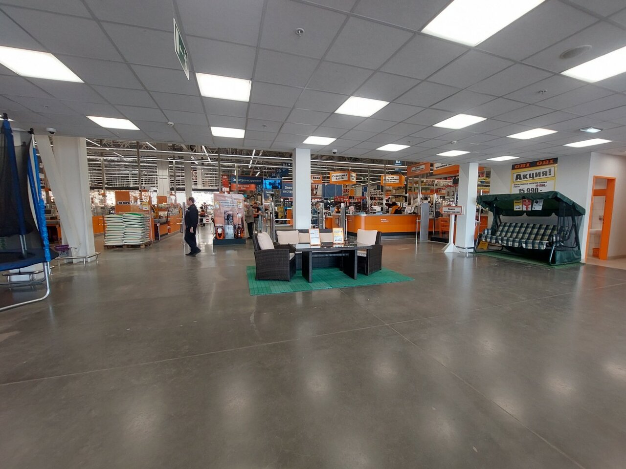 Большой отличный супермаркет, но …есть лучше. Менеджеры торгового зала пассивные. Заняты общением друг с другом. Найти свободного в иных отделах невозможно, приходится идти на стойку информации. Нет услуг по резке отверстий в кухонных стойках и др. Менеджеры предлагают телефон сторонних мастеров. Объем товара огромен. Но из-за неквалифицированнооо персонала едешь в другой магазин.