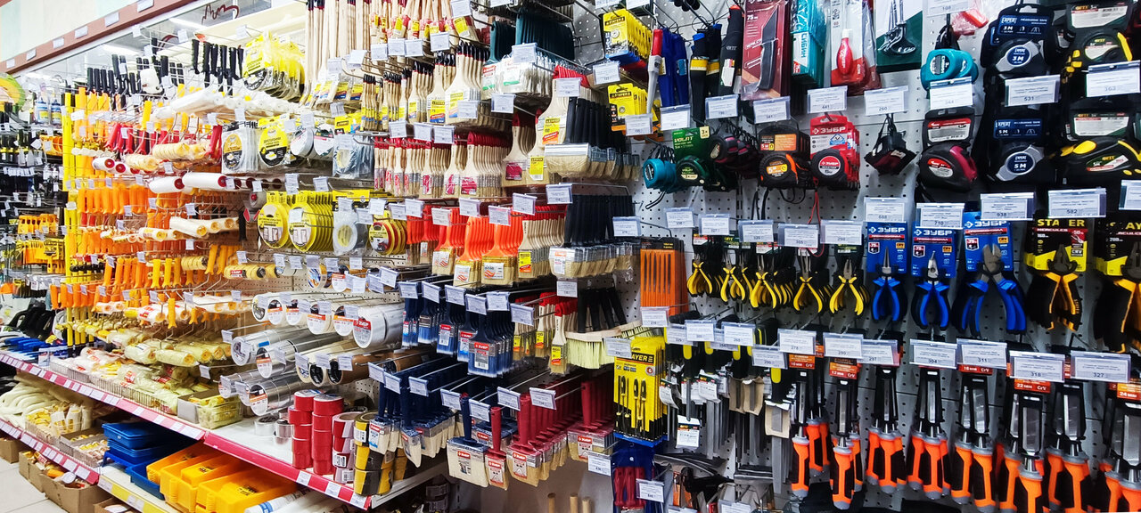 - Широкий ассортимент строительных и хозяйственных товаров