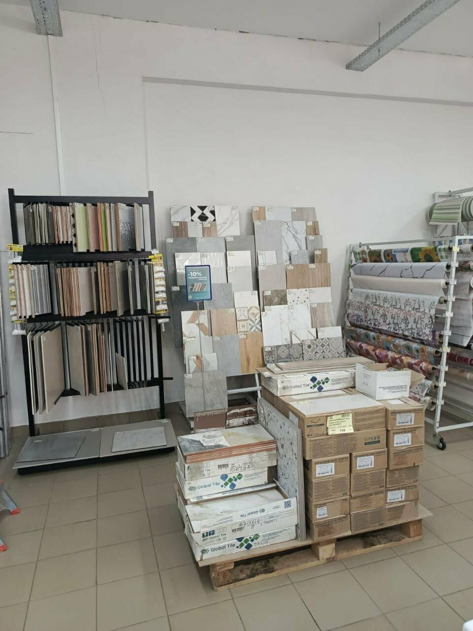 - Большой ассортимент (линолеум, сантехника, качели и др.)