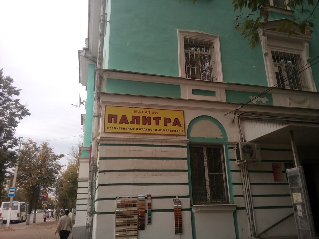 «Палитра» — строительный магазин в Твери, расположенный по адресу проспект Ленина, 18/1. Ассортимент включает материалы, инструменты и товары для строительства, ремонта и отделки. Режим работы: пн-пт 09:00–18:00, сб-вс 09:00–17:00. Контактный телефон: +7 (4822) 44-34-90.