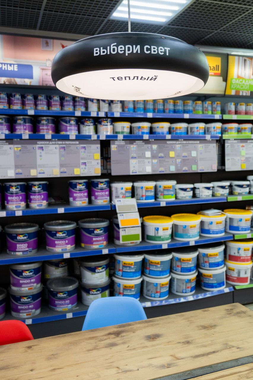 Грамотные сотрудники, большой выбор лакокрасочных покрытий и строительных смесей, цены радуют