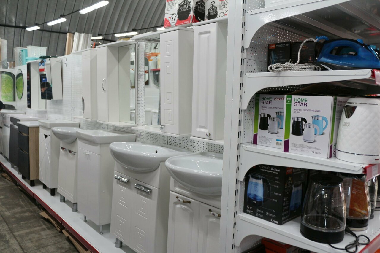 - Широкий ассортимент (электроинструменты, обои, отделочные материалы, товары для дома)