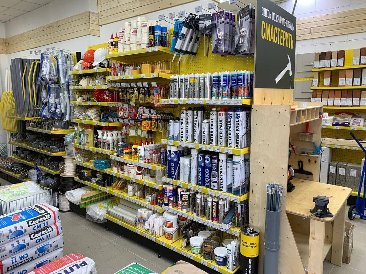 Приятно был удивлен, что есть не большой слесарный уголок. Можно чего нибудь помастерить. Спасибо, персонал помогал, советовал, денег много не взял.