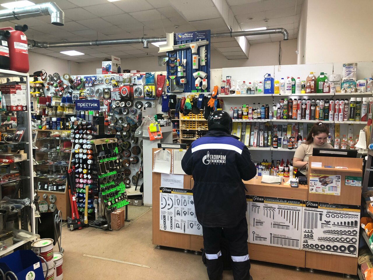Магазин предлагает широкий ассортимент строительных материалов, инструментов и товаров для ремонта. Работает без выходных.