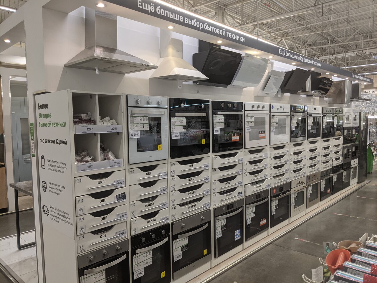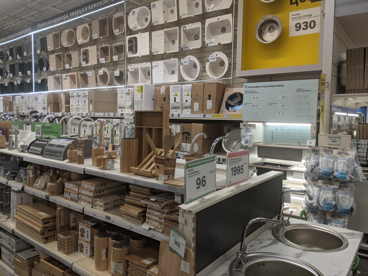 - Бесплатные услуги (дизайн-проект, подбор кухни); Удобное расположение, особенно для иногородних; Приемлемые цены на материалы; Наличие кафе и туалета в магазине; Огромный ассортимент товаров для ремонта и строительства