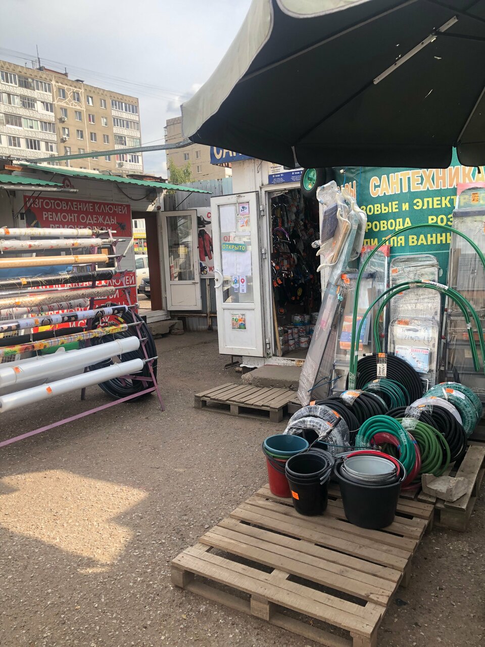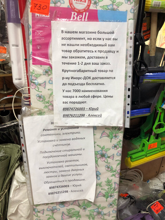 - Широкий ассортимент (сантехника, электрика, покрасочные изделия, товары для сада)
